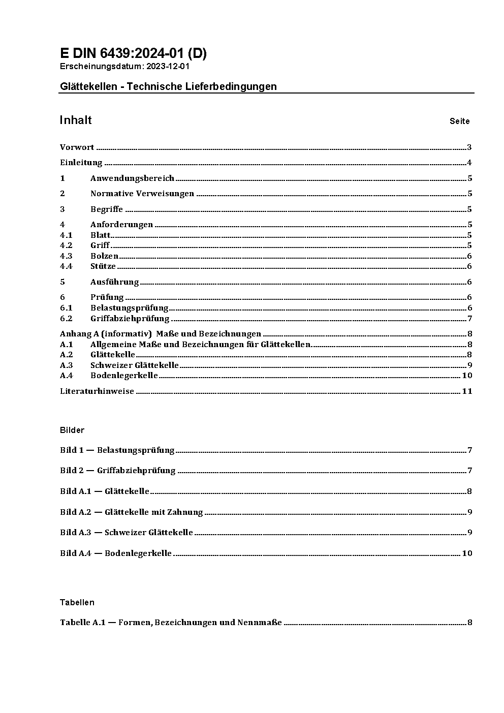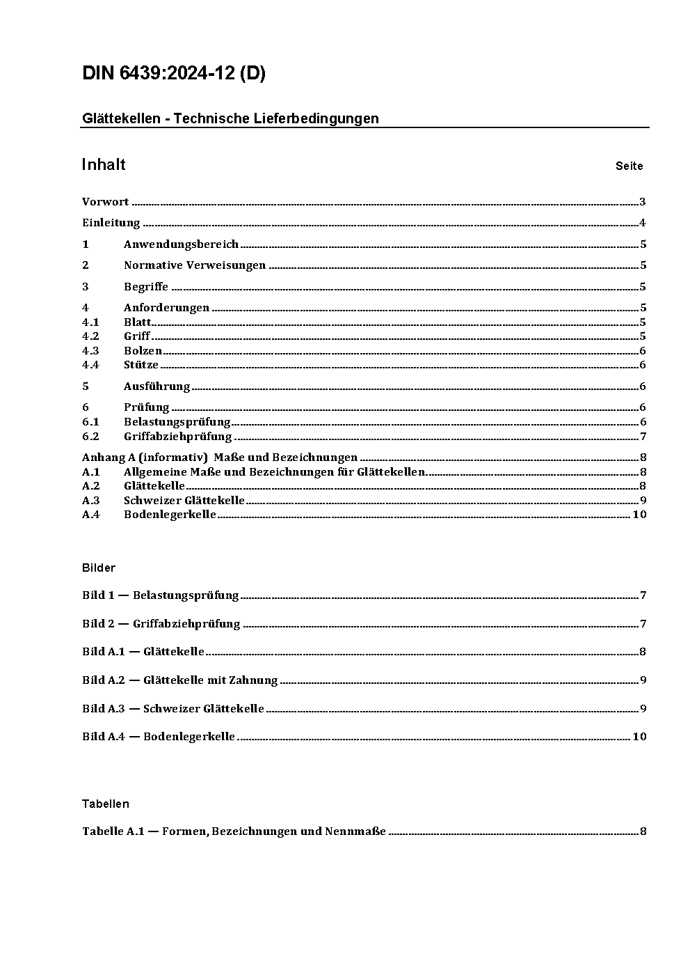 Glättekellen - Technische Lieferbedingungen