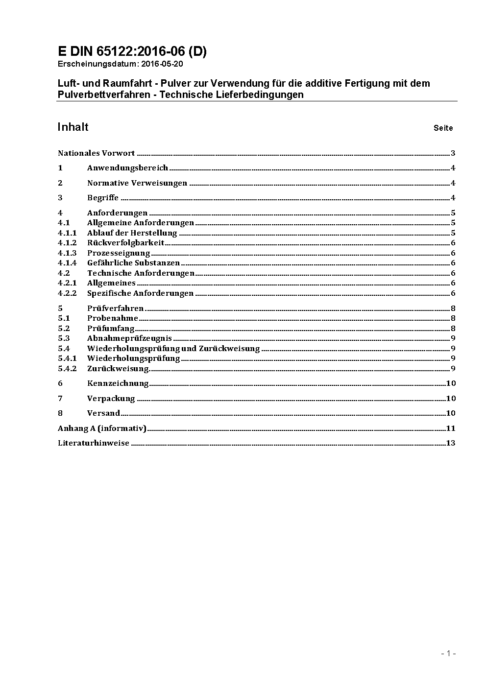 Luft- und Raumfahrt - Pulver zur Verwendung für die additive Fertigung mittels Pulverbettverfahren - Technische Lieferbedingungen