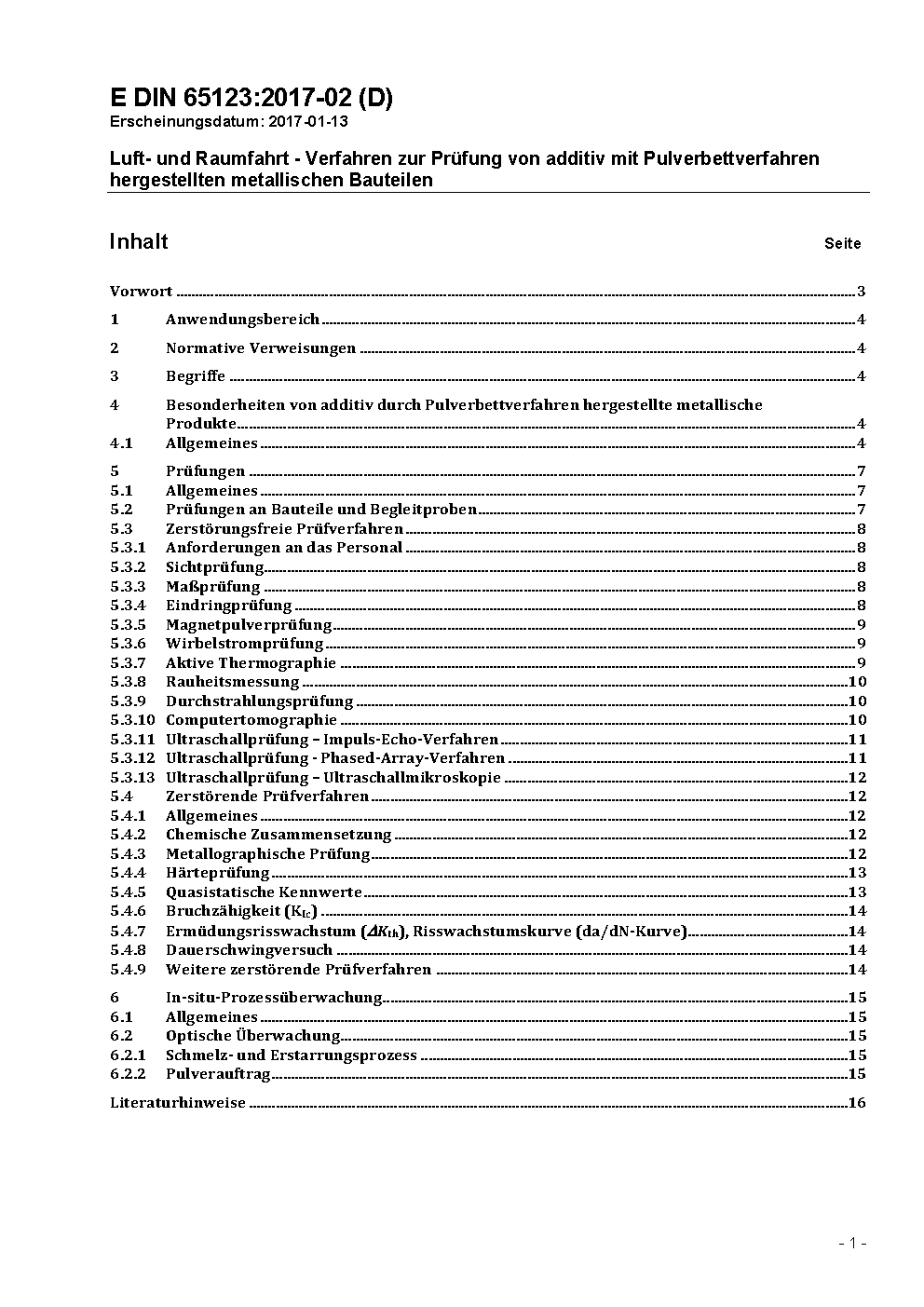 Luft- und Raumfahrt - Verfahren zur Prüfung von additiv mit Pulverbettverfahren hergestellten metallischen Bauteilen