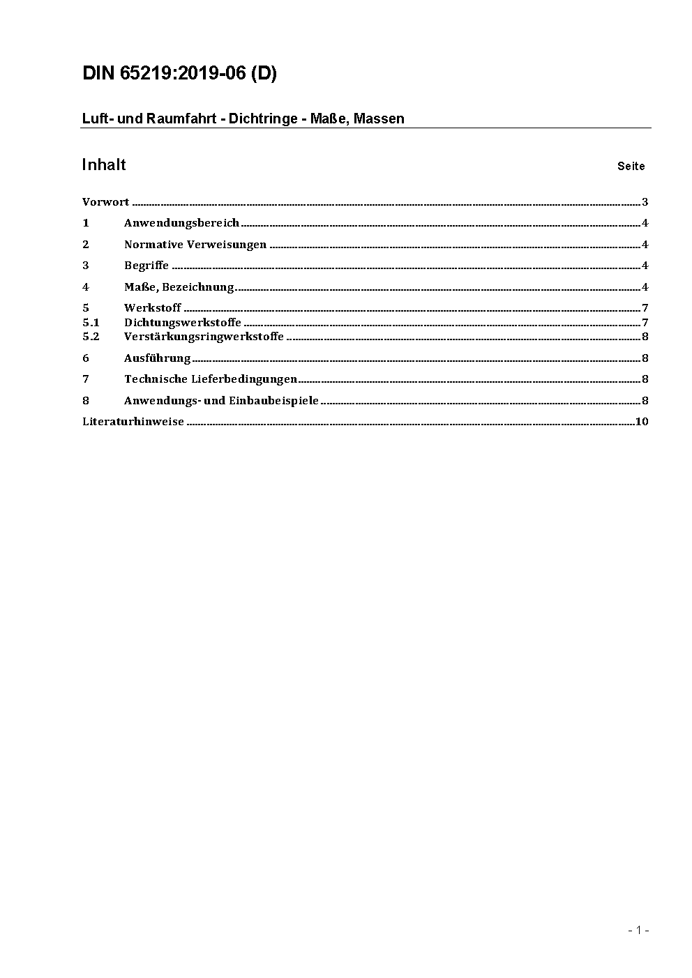 Luft- und Raumfahrt - Dichtringe - Maße, Massen