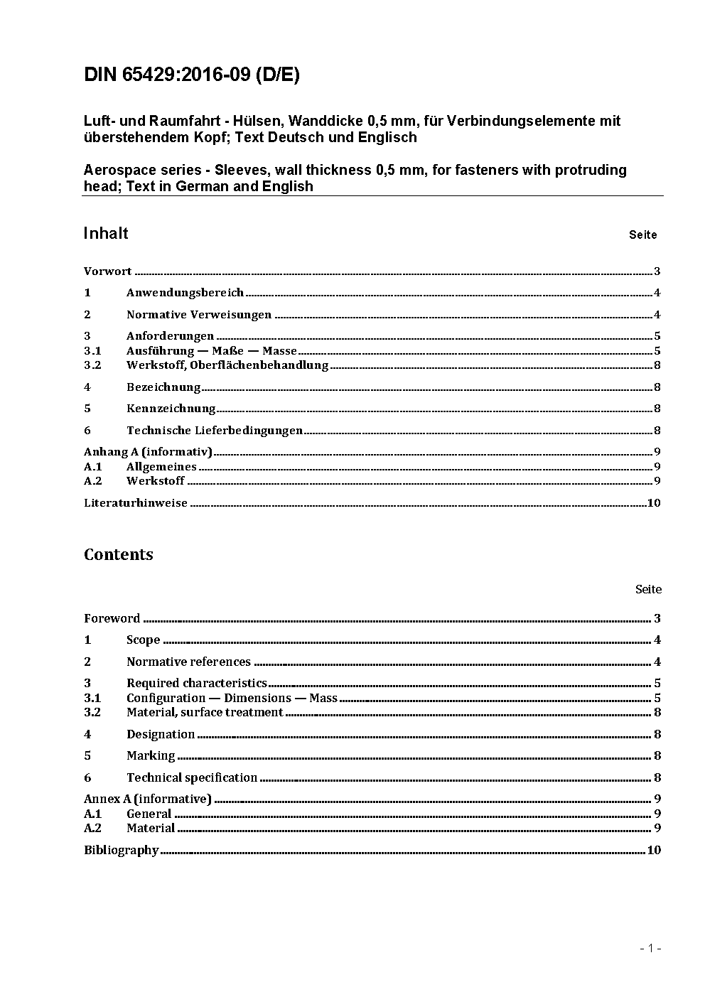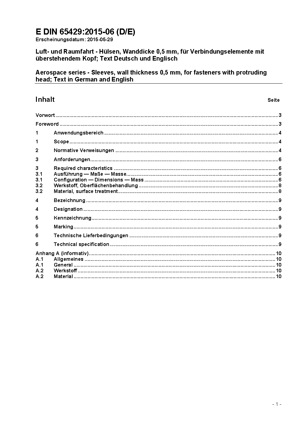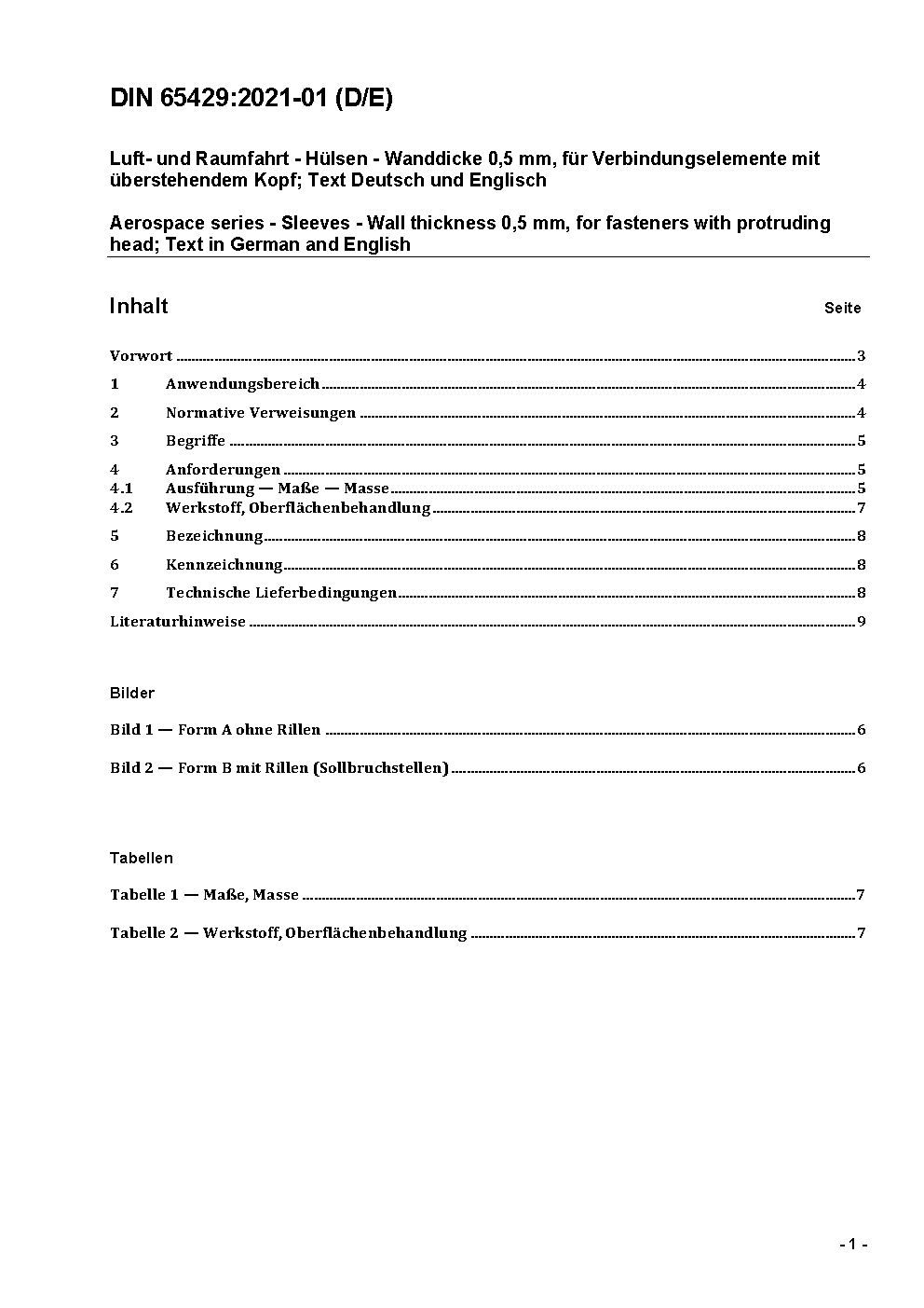 Aerospace series - Sleeves, wall thickness 0,5 mm, for fasteners with protruding head; Text in German and English
