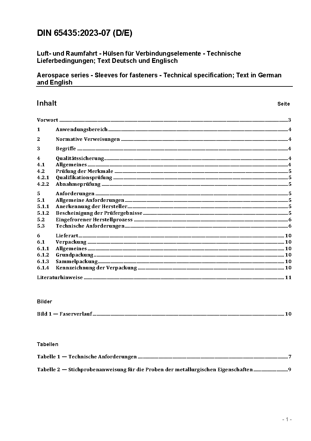 Aerospace series - Sleeves for fasteners - Technical specification; Text in German and English