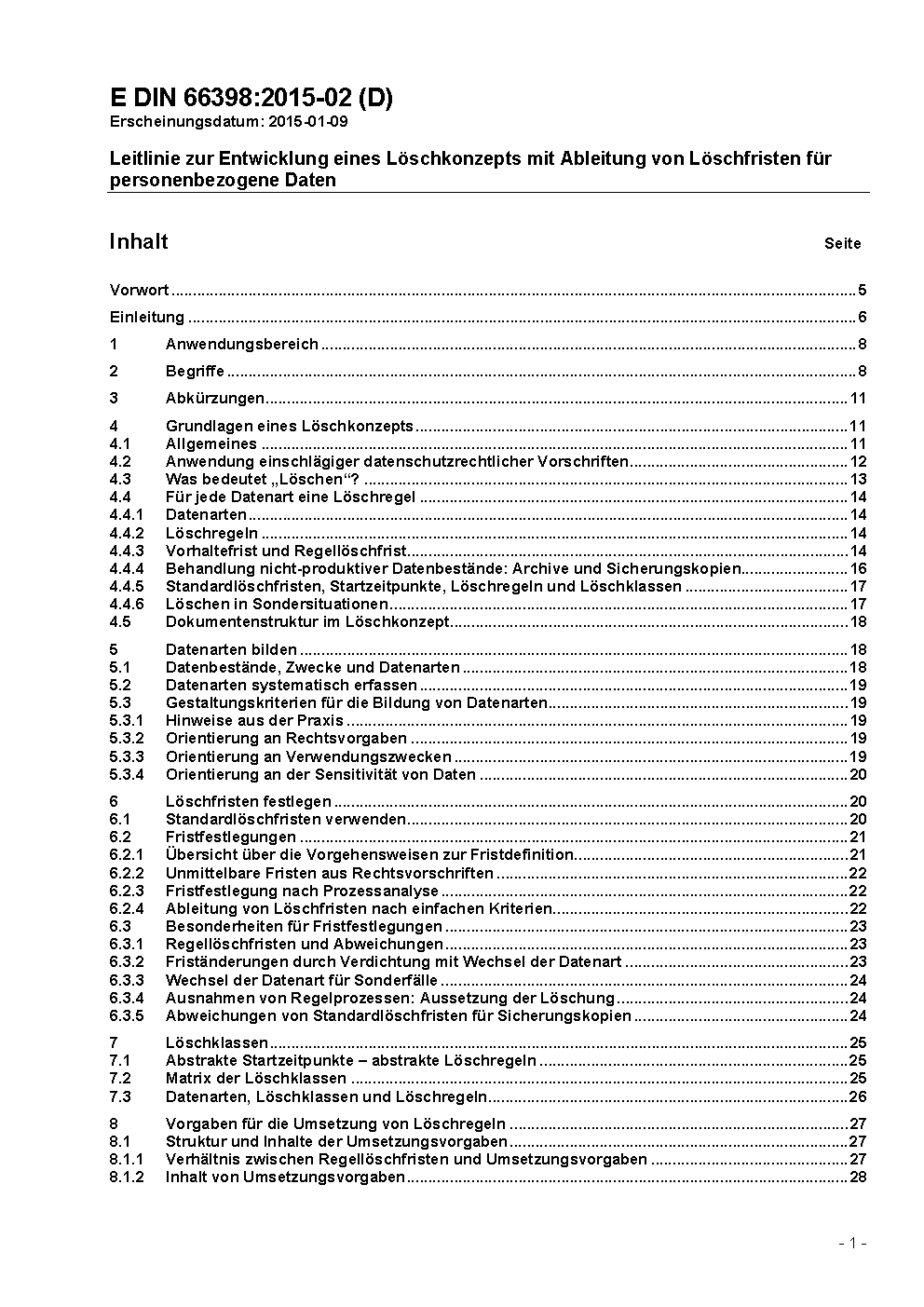 Leitlinie zur Entwicklung eines Löschkonzepts mit Ableitung von Löschfristen für personenbezogene Daten