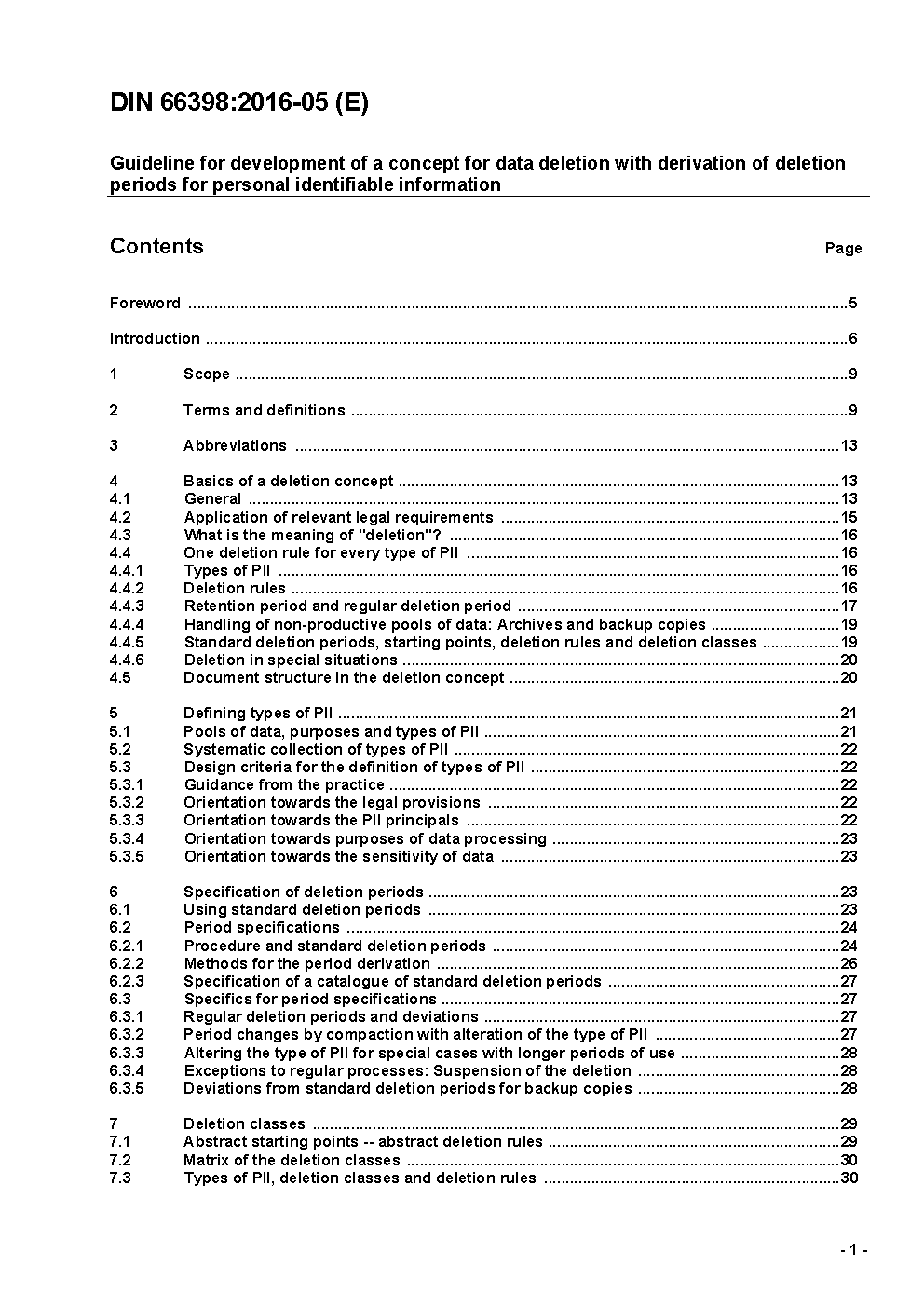 Guideline for development of a concept for data deletion of personal identifiable information with derivation of deletion periods