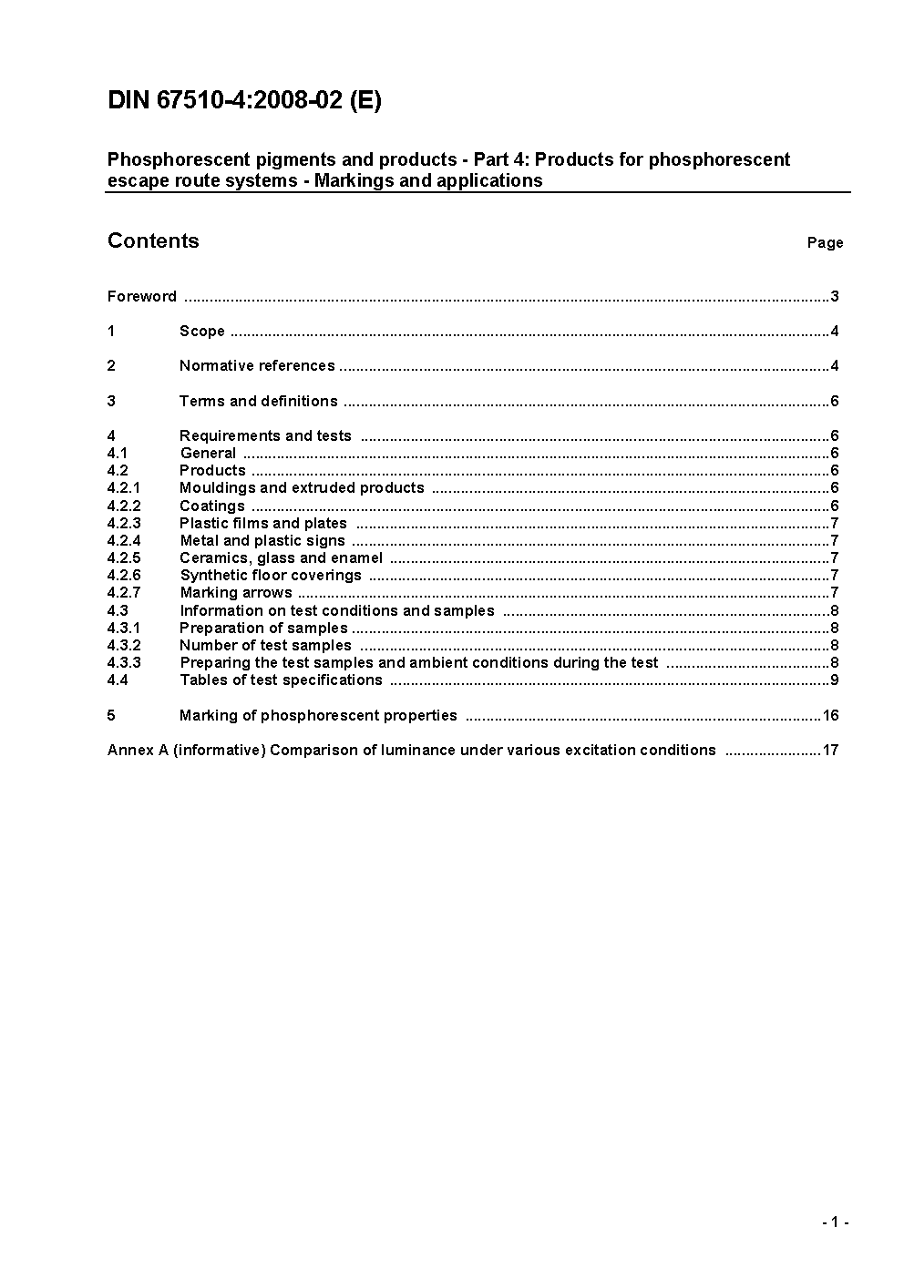Langnachleuchtende Pigmente und Produkte - Teil 4: Produkte für langnachleuchtendes Sicherheitsleitsystem; Markierungen und Kennzeichnungen