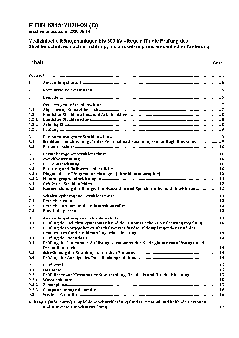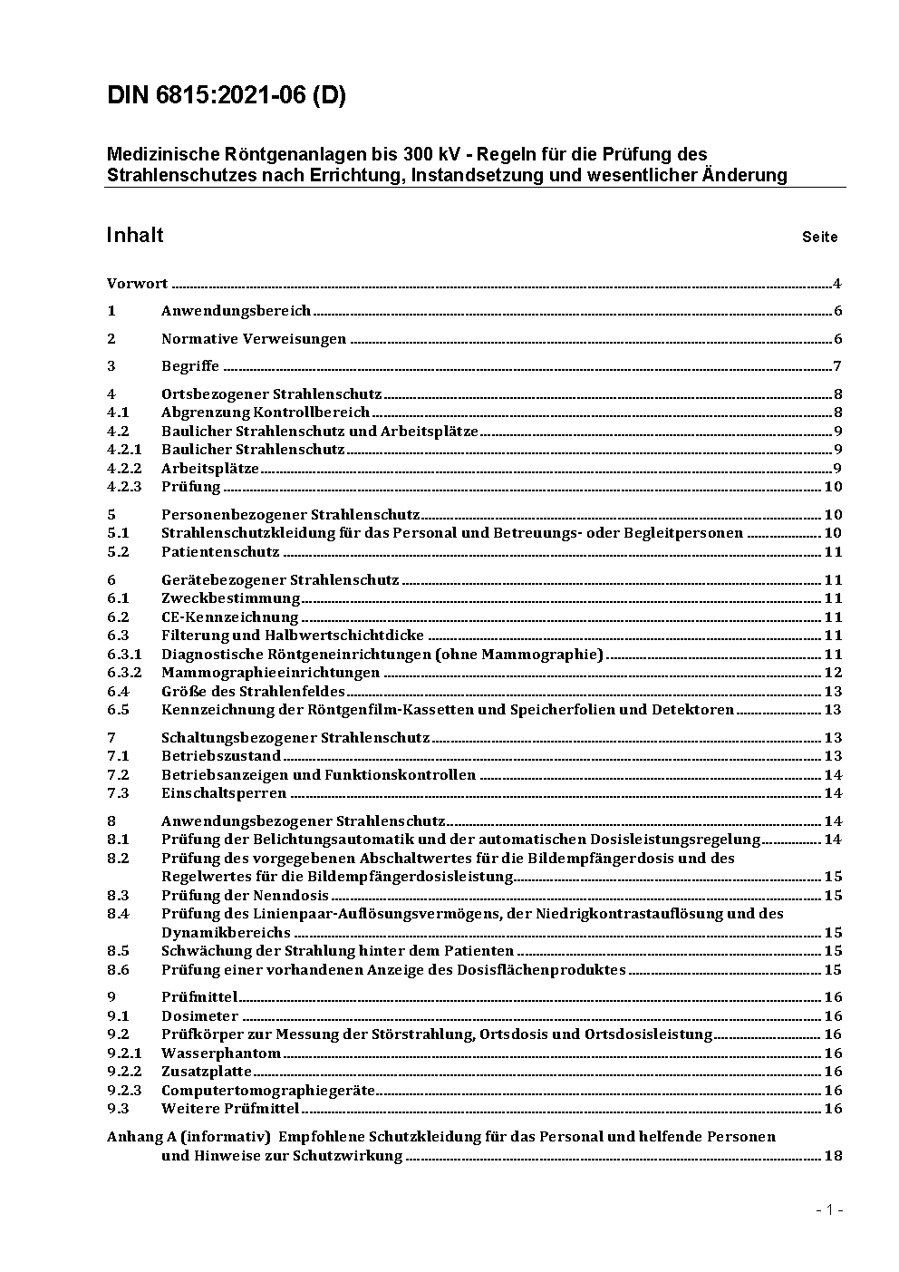 Medizinische Röntgenanlagen bis 300 kV - Regeln für die Prüfung des Strahlenschutzes nach Errichtung, Instandsetzung und wesentlicher Änderung