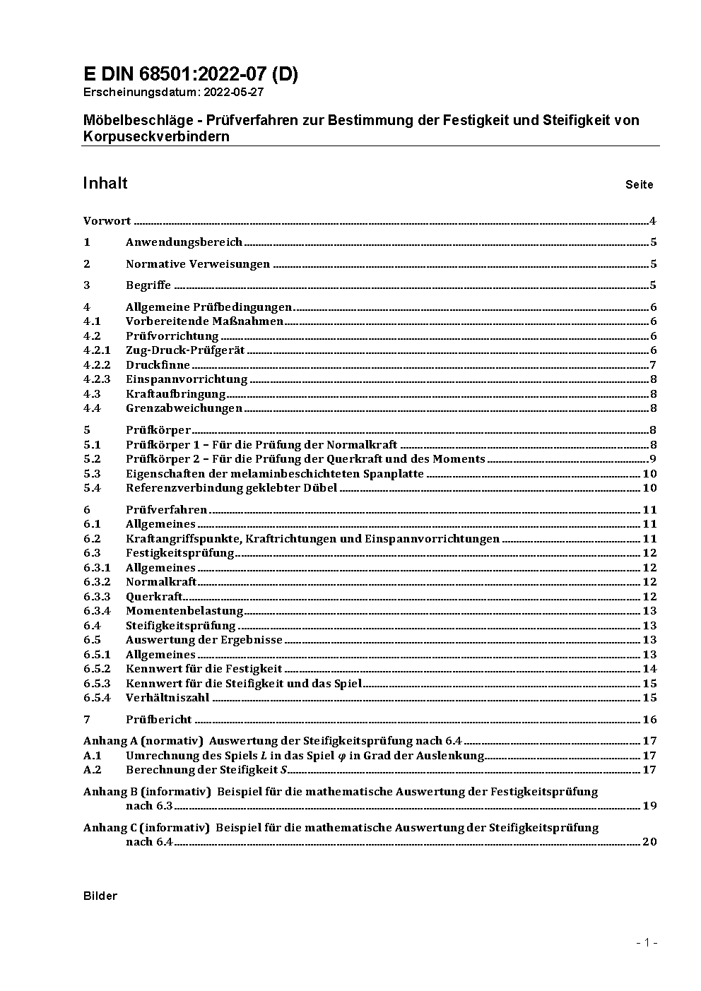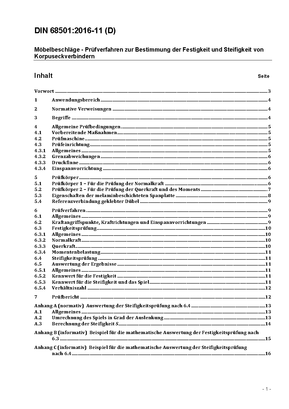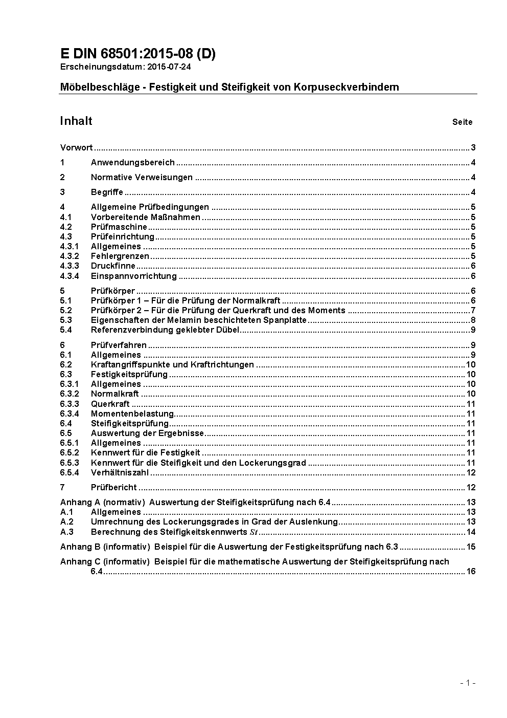 Möbelbeschläge - Prüfverfahren zur Bestimmung der Festigkeit und Steifigkeit von Korpuseckverbindern