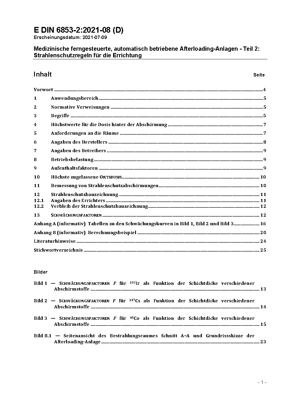 Medizinische ferngesteuerte, automatisch betriebene Afterloading-Anlagen - Teil 2: Strahlenschutzregeln für die Errichtung