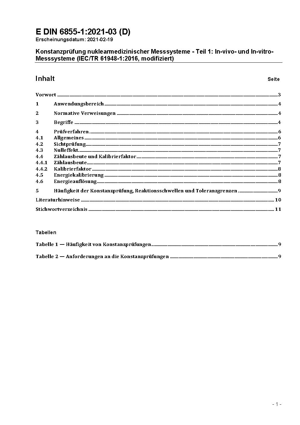 Konstanzprüfung nuklearmedizinischer Messsysteme - Teil 1: In-vivo- und In-vitro-Messplätze (IEC/TR 61948-1:2001, modifiziert)