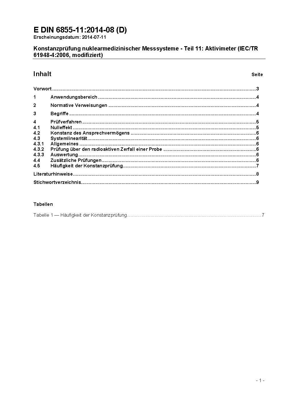 Qualitätsprüfung nuklearmedizinischer Meßsysteme - Teil 11: Konstanzprüfung von Aktivmetern