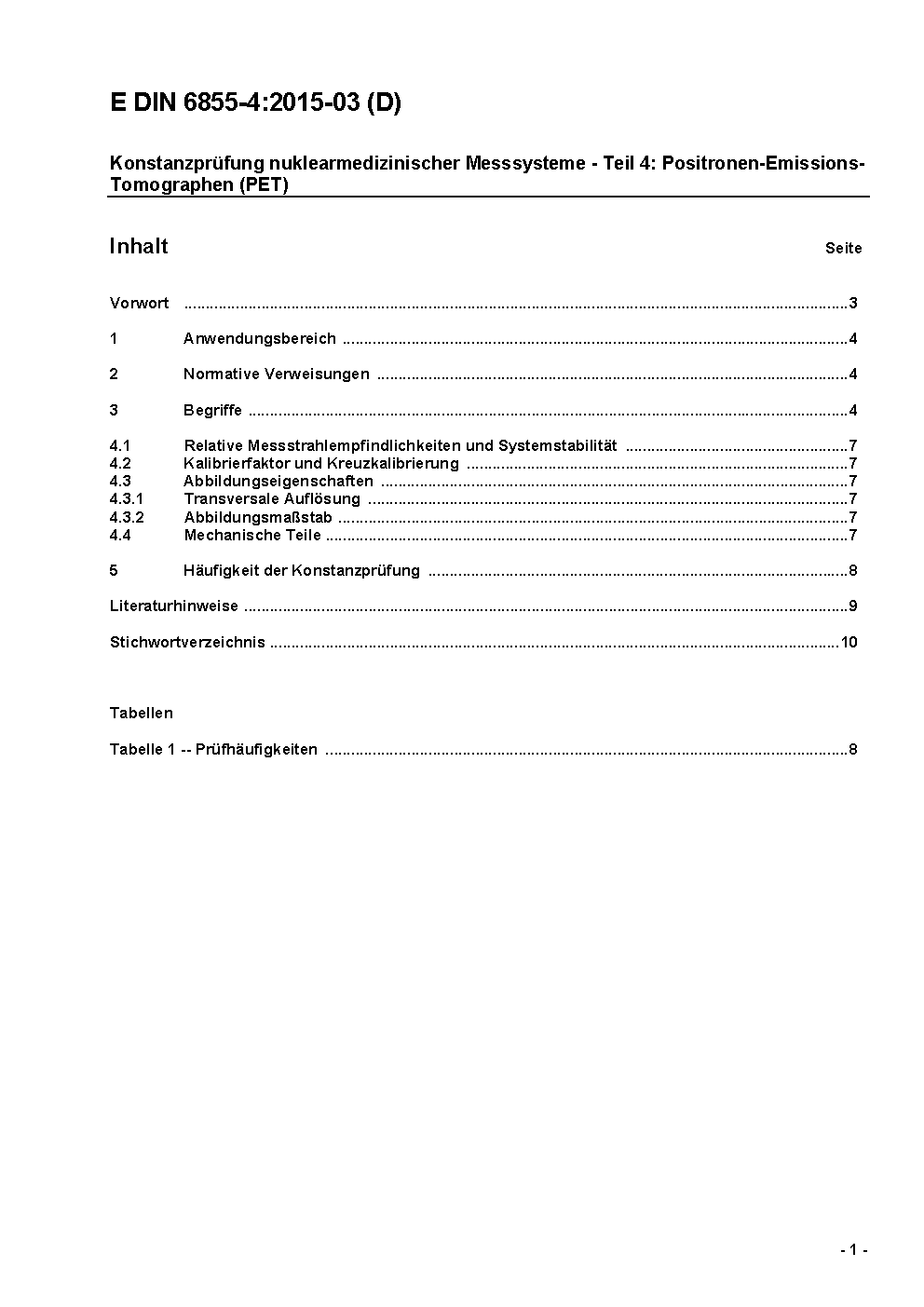Qualitätsprüfung nuklearmedizinischer Messsysteme - Teil 4: Konstanzprüfung von Positronen-Emissions-Tomographen (PET)