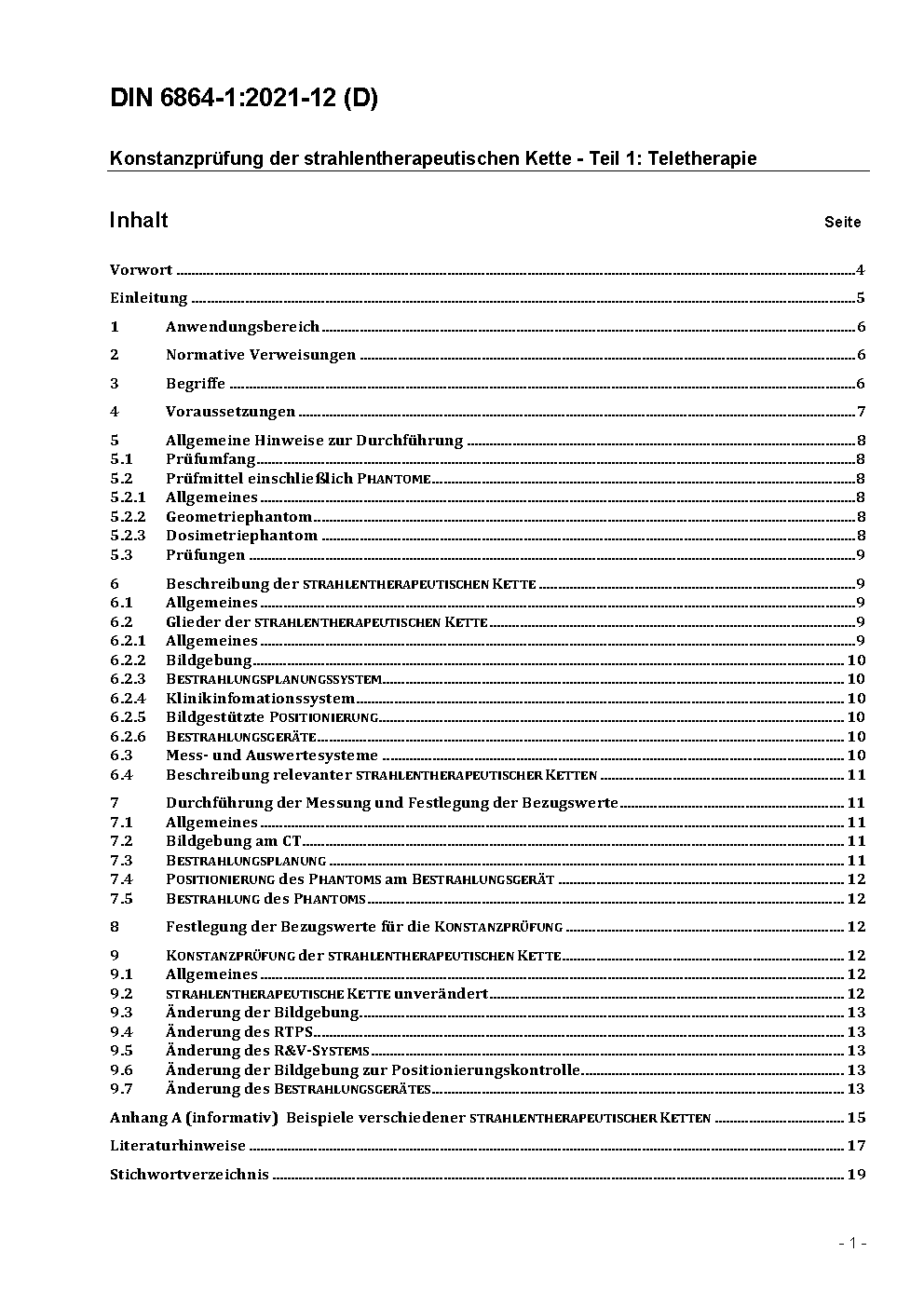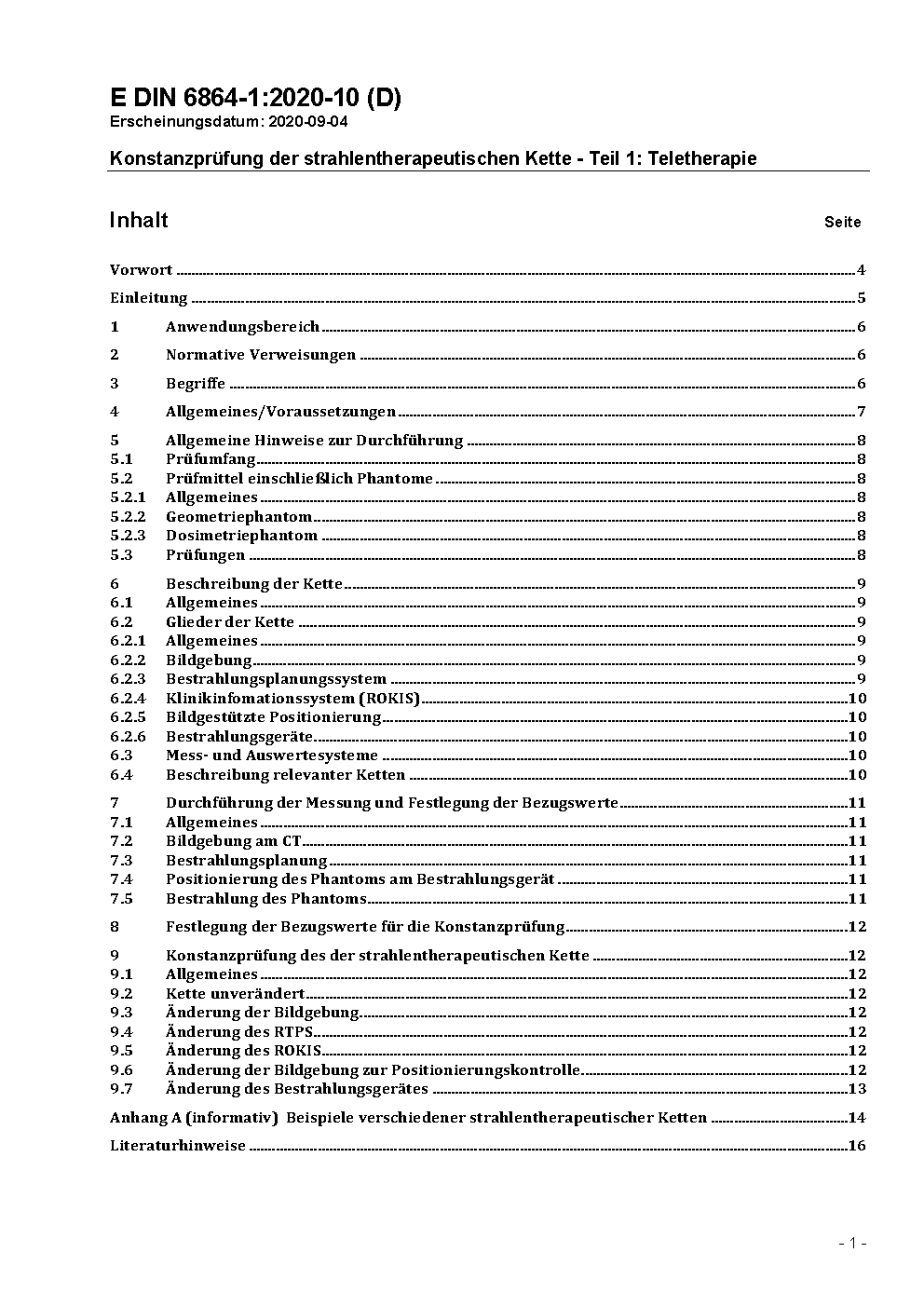 Konstanzprüfung der strahlentherapeutischen Kette - Teil 1: Teletherapie