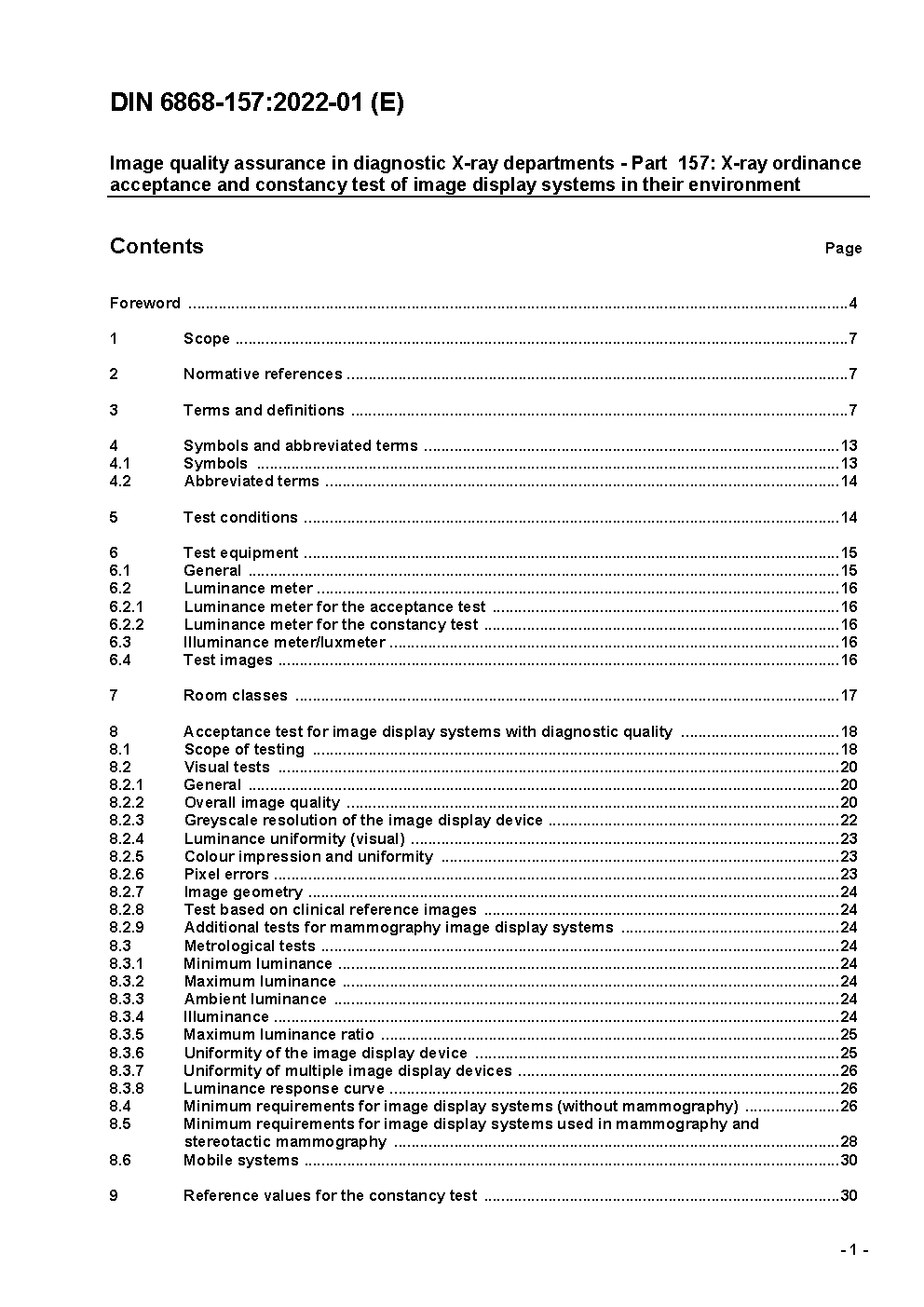Image quality assurance in diagnostic X-ray departments - Part 157: X-ray ordinance acceptance and constancy test of image display systems in their environment