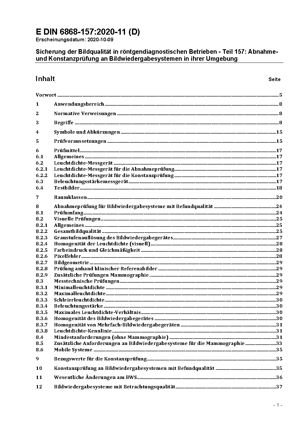 Sicherung der Bildqualität in röntgendiagnostischen Betrieben - Teil 157: Abnahme- und Konstanzprüfung nach RöV an Bildwiedergabesystemen in ihrer Umgebung