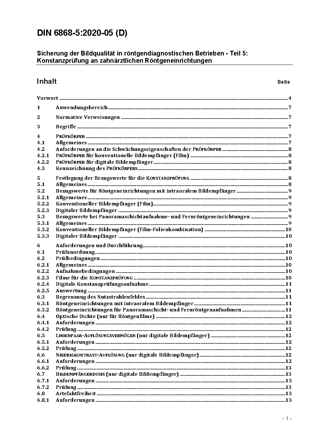 Sicherung der Bildqualität in röntgendiagnostischen Betrieben; Konstanzprüfung in der zahnärztlichen Röntgenaufnahmetechnik
