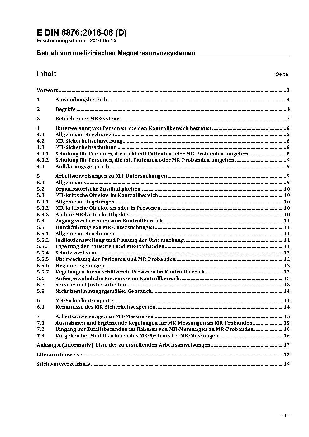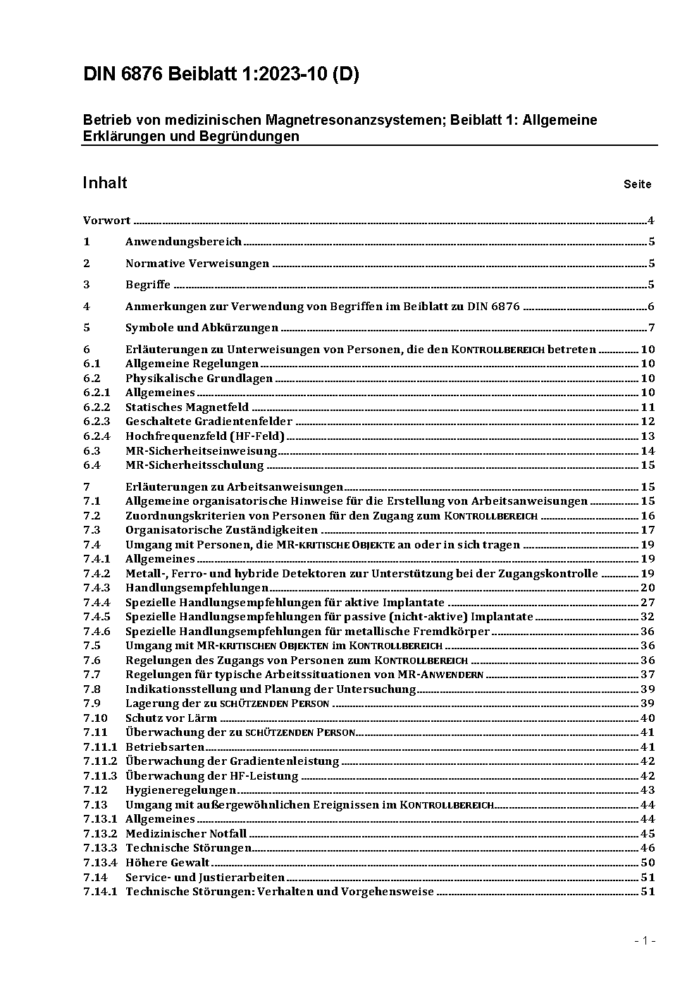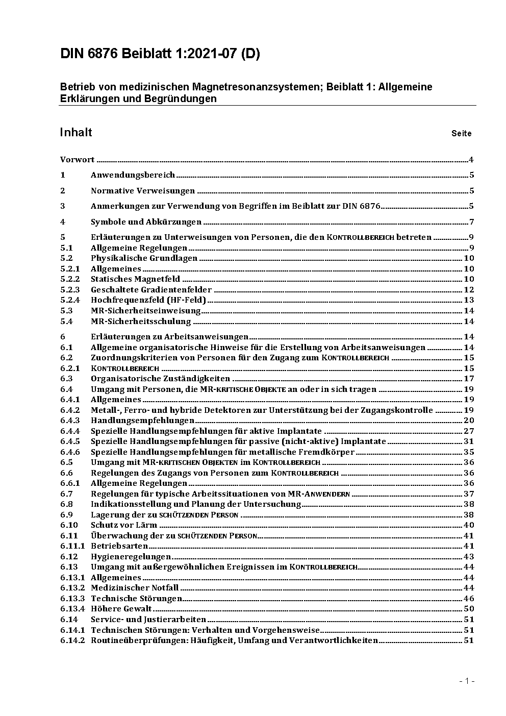 Betrieb von medizinischen Magnetresonanzsystemen; Beiblatt 1: Allgemeine Erklärungen und Begründungen