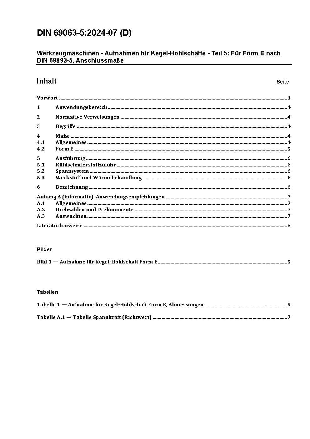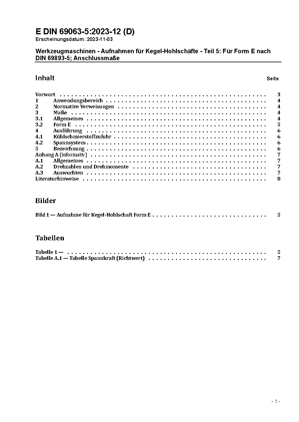 Werkzeugmaschinen - Aufnahmen für Kegel-Hohlschäfte - Teil 5: Für Form E nach DIN 69893-5; Anschlussmaße