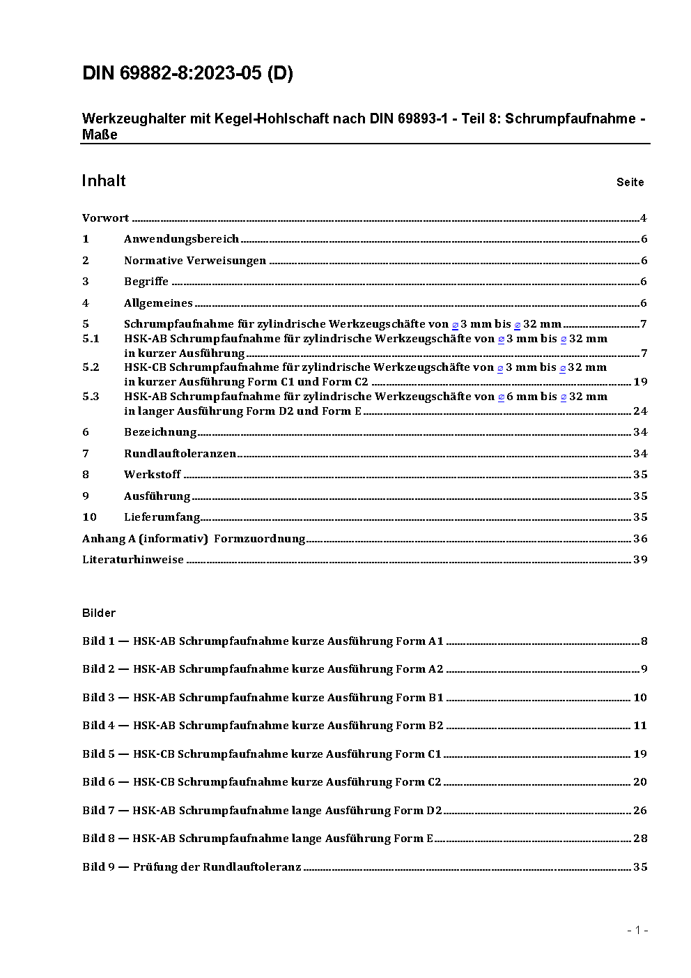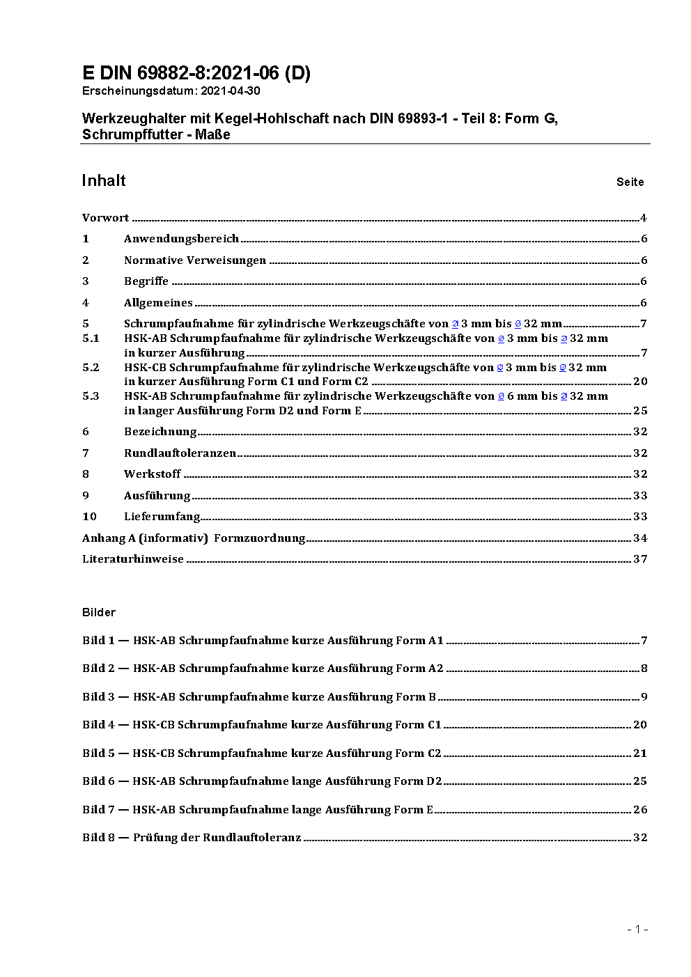 Werkzeughalter mit Kegel-Hohlschaft nach DIN 69893-1 - Teil 8: Form G, Schrumpffutter - Maße