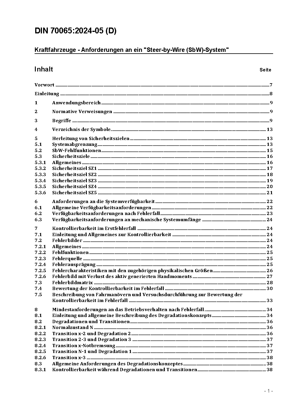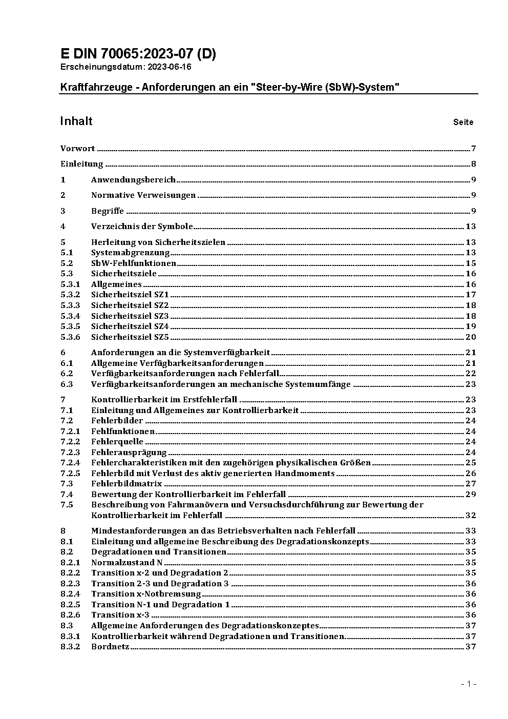 Kraftfahrzeuge - Anforderungen an ein "Steer-by-Wire (SbW)-System"