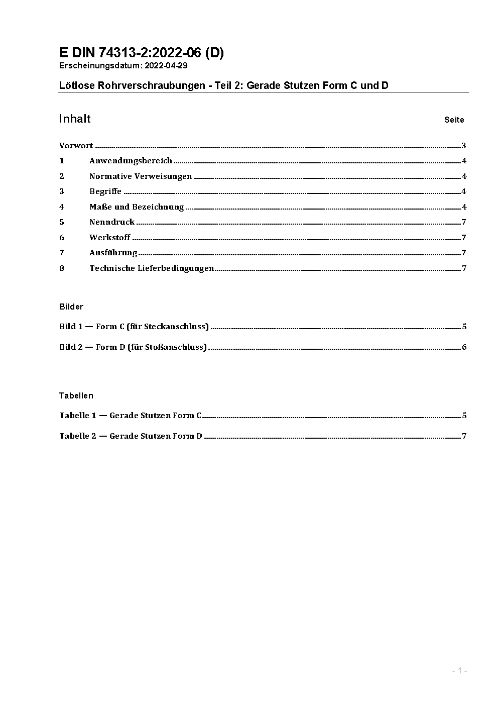 Lötlose Rohrverschraubungen - Teil 2: Gerade Stutzen Form C und D
