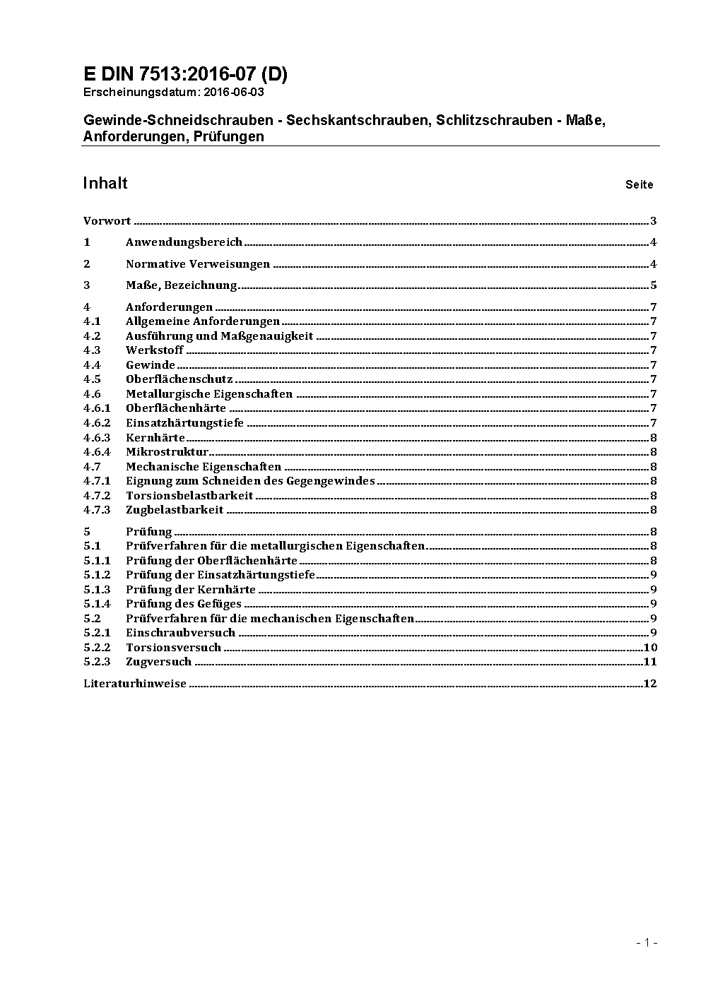 Gewinde-Schneidschrauben - Sechskantschrauben, Schlitzschrauben - Maße, Anforderungen, Prüfungen