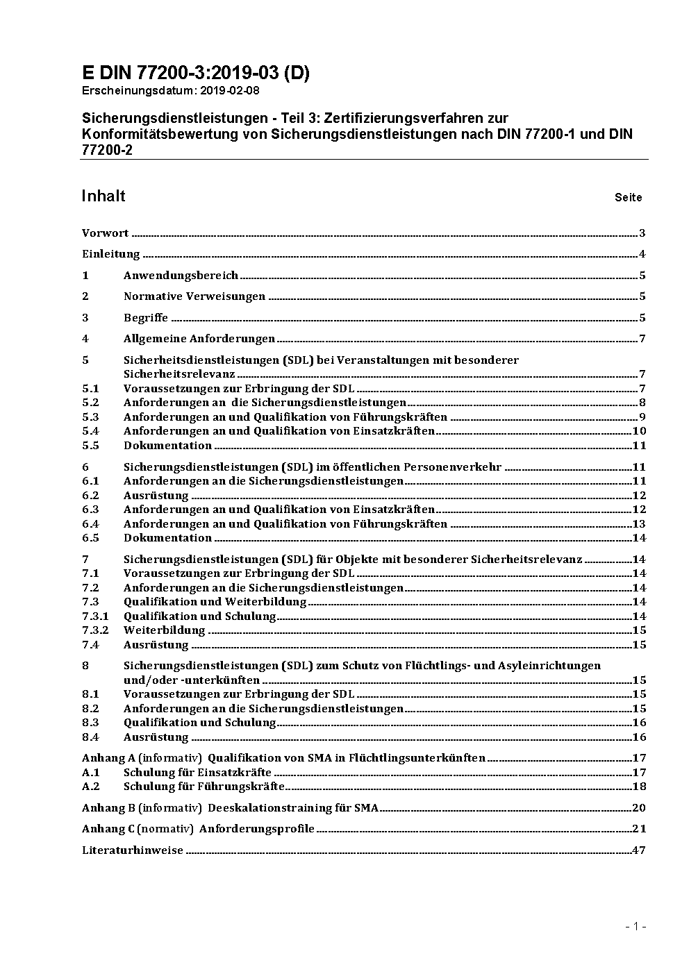 Private security services - Part 3: Certification procedure for the conformity assessment of private security services in accordance with DIN 77200-1.