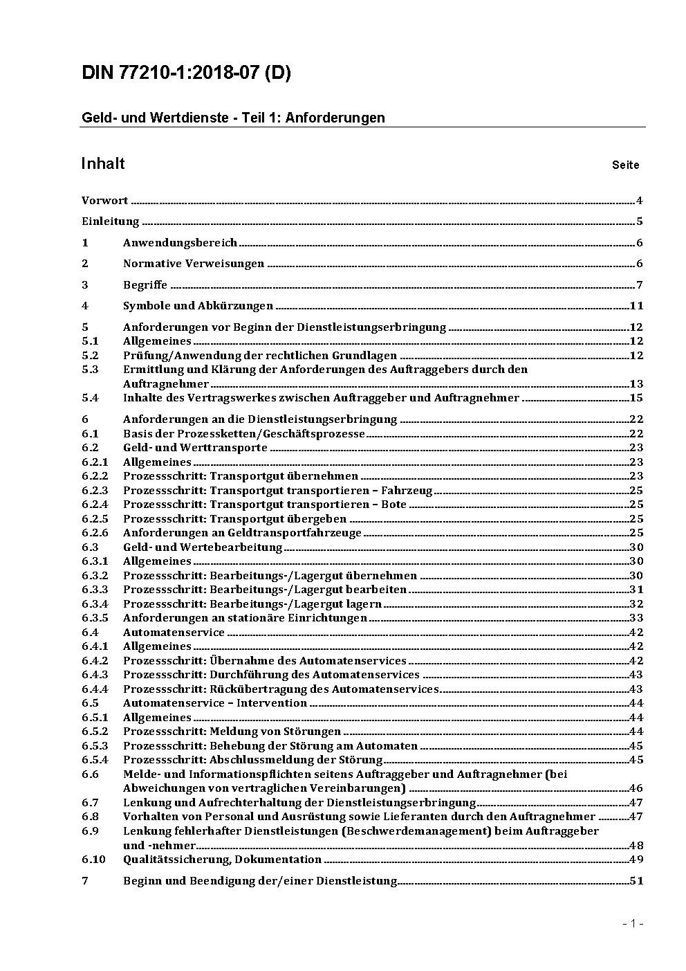 Geld- und Wertdienste - Teil 1: Anforderungen / Achtung: Daneben gilt DIN 77200 (2008-05) noch bis 2019-07-01.