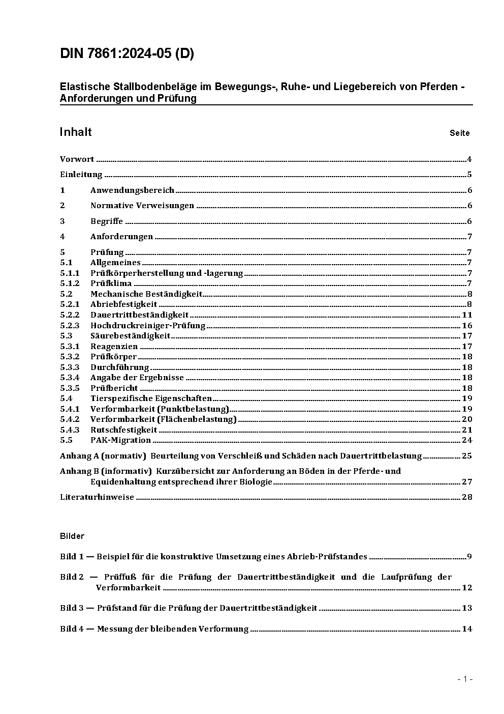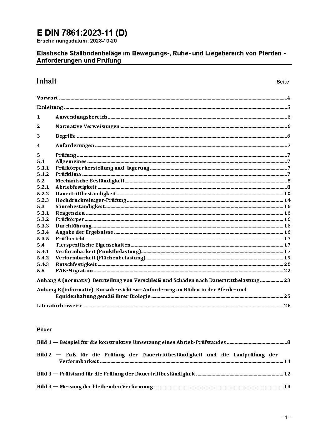 Elastische Stallbodenbeläge im Bewegungs-, Ruhe- und Liegebereich von Pferden - Anforderungen und Prüfung