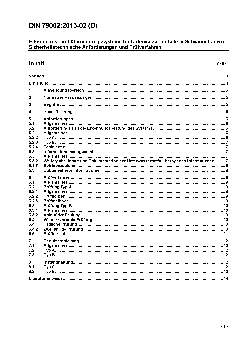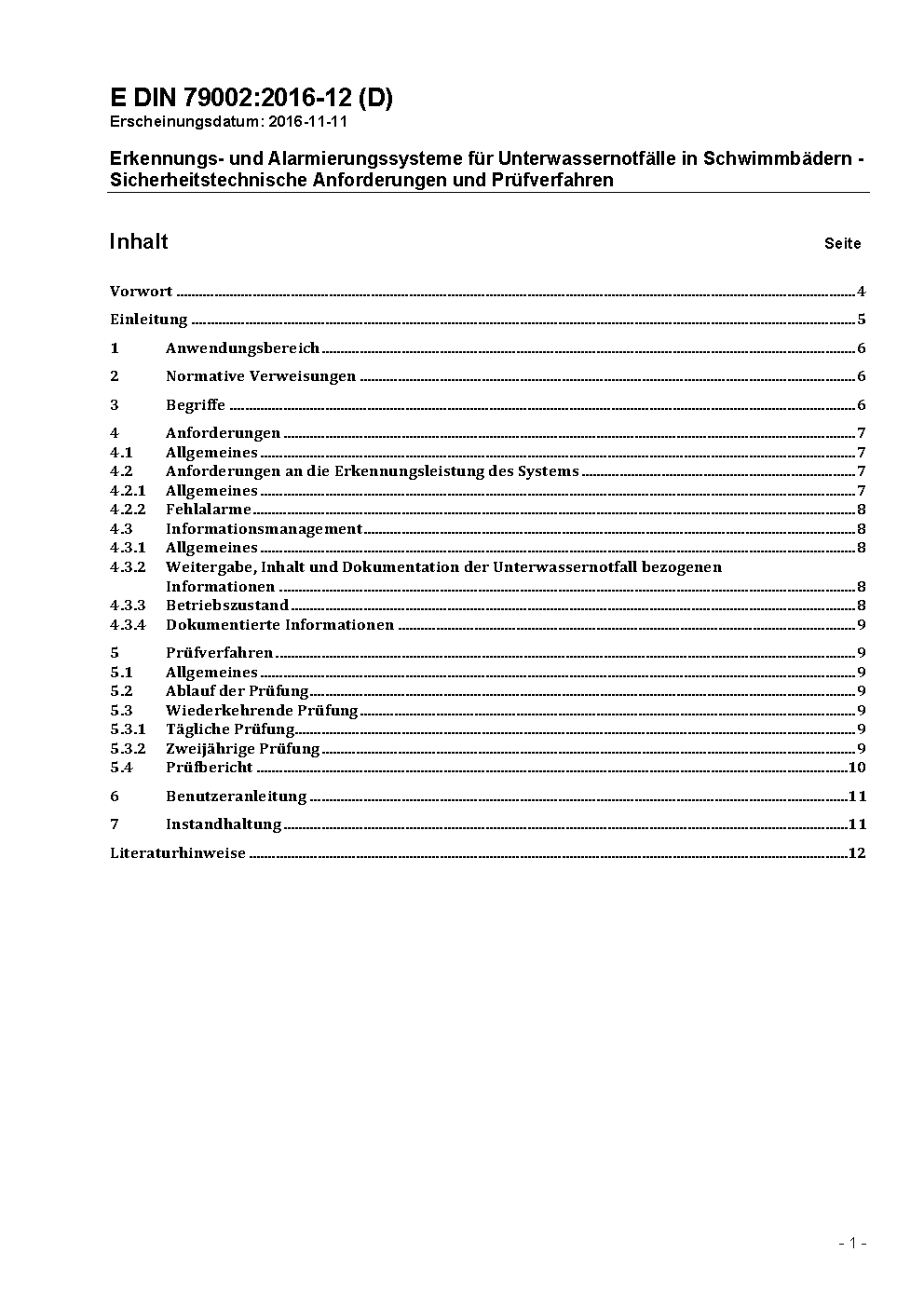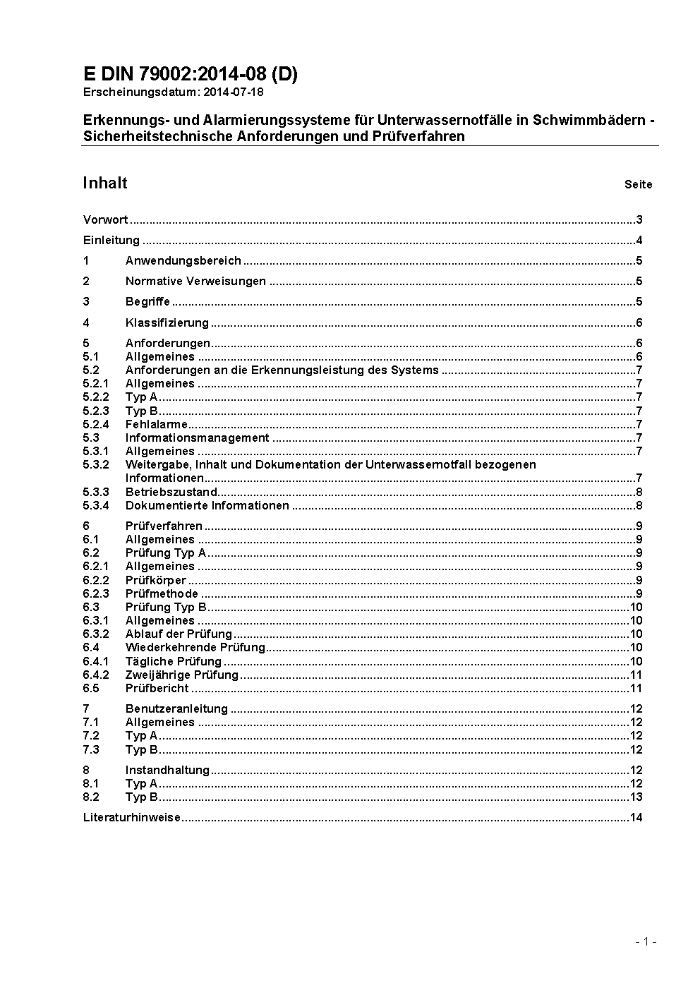 Erkennungs- und Alarmierungssysteme für Unterwassernotfälle in Schwimmbädern - Sicherheitstechnische Anforderungen und Prüfverfahren