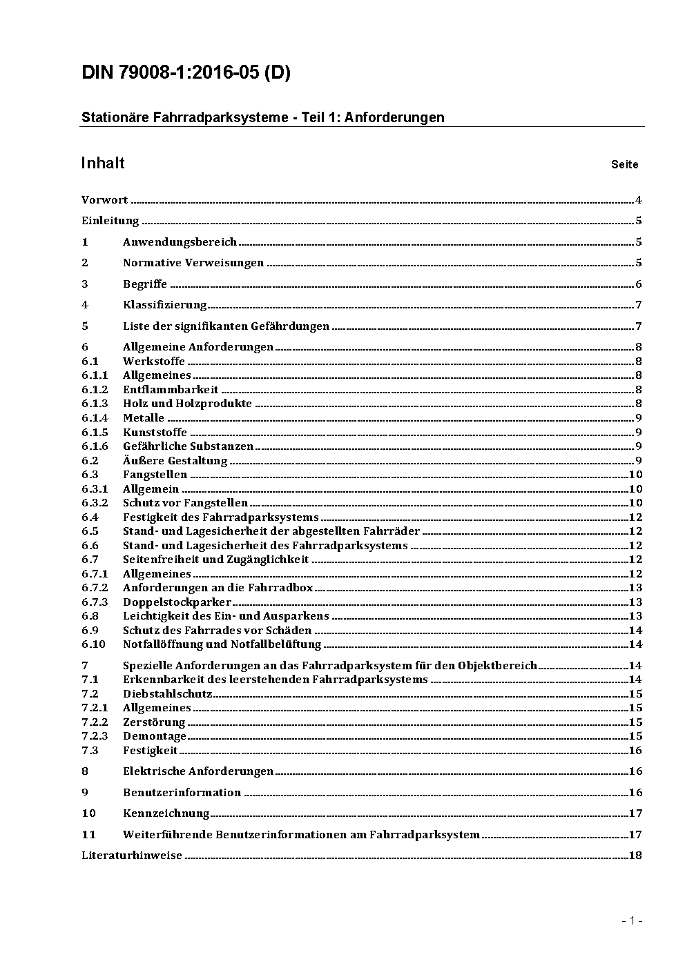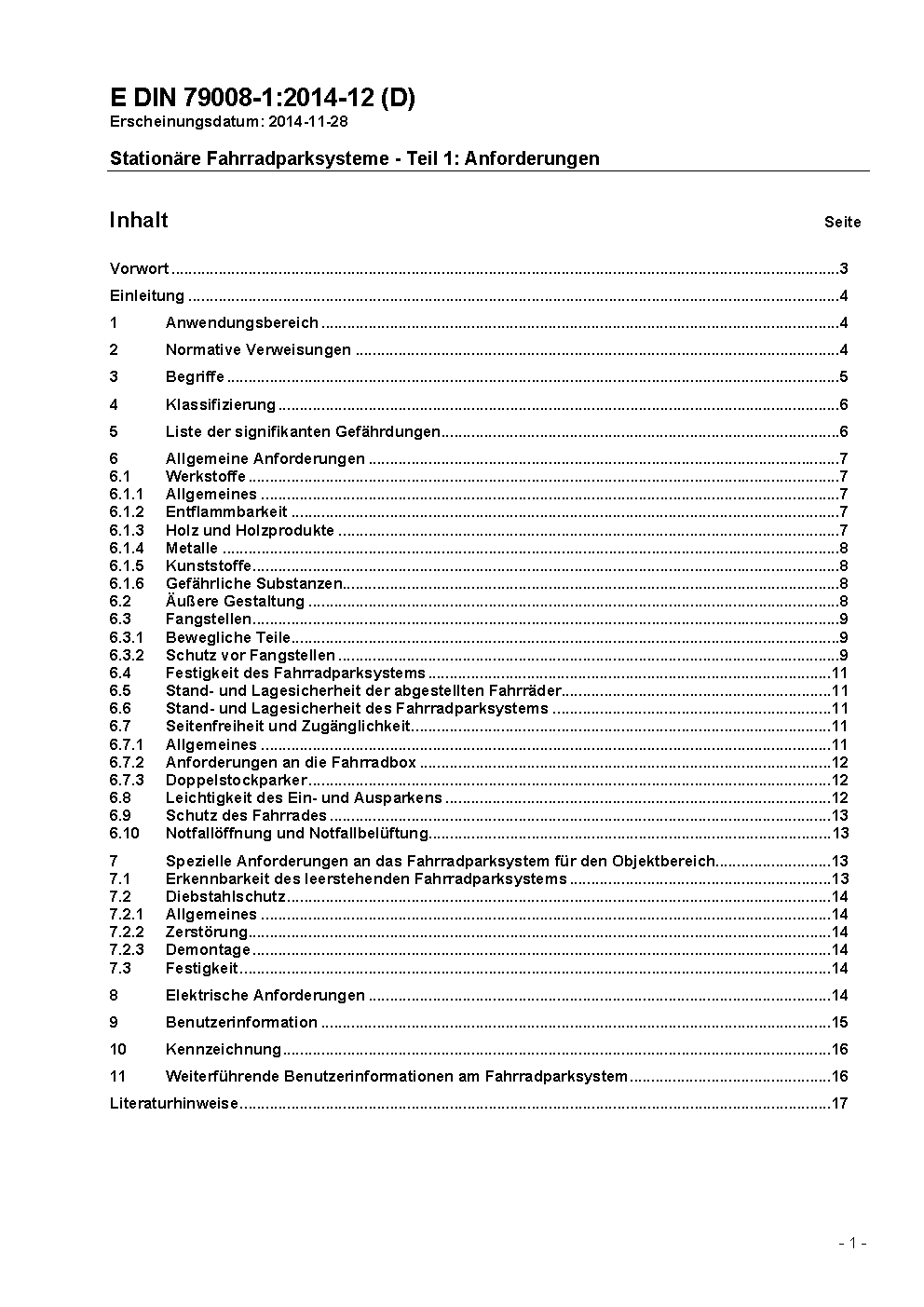 Stationäre Fahrradparksysteme - Teil 1: Anforderungen