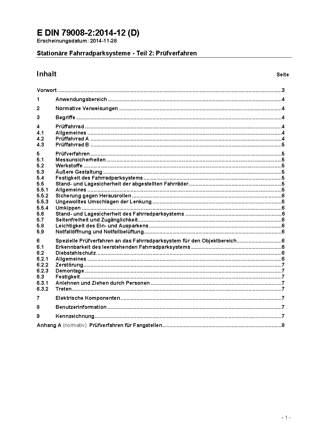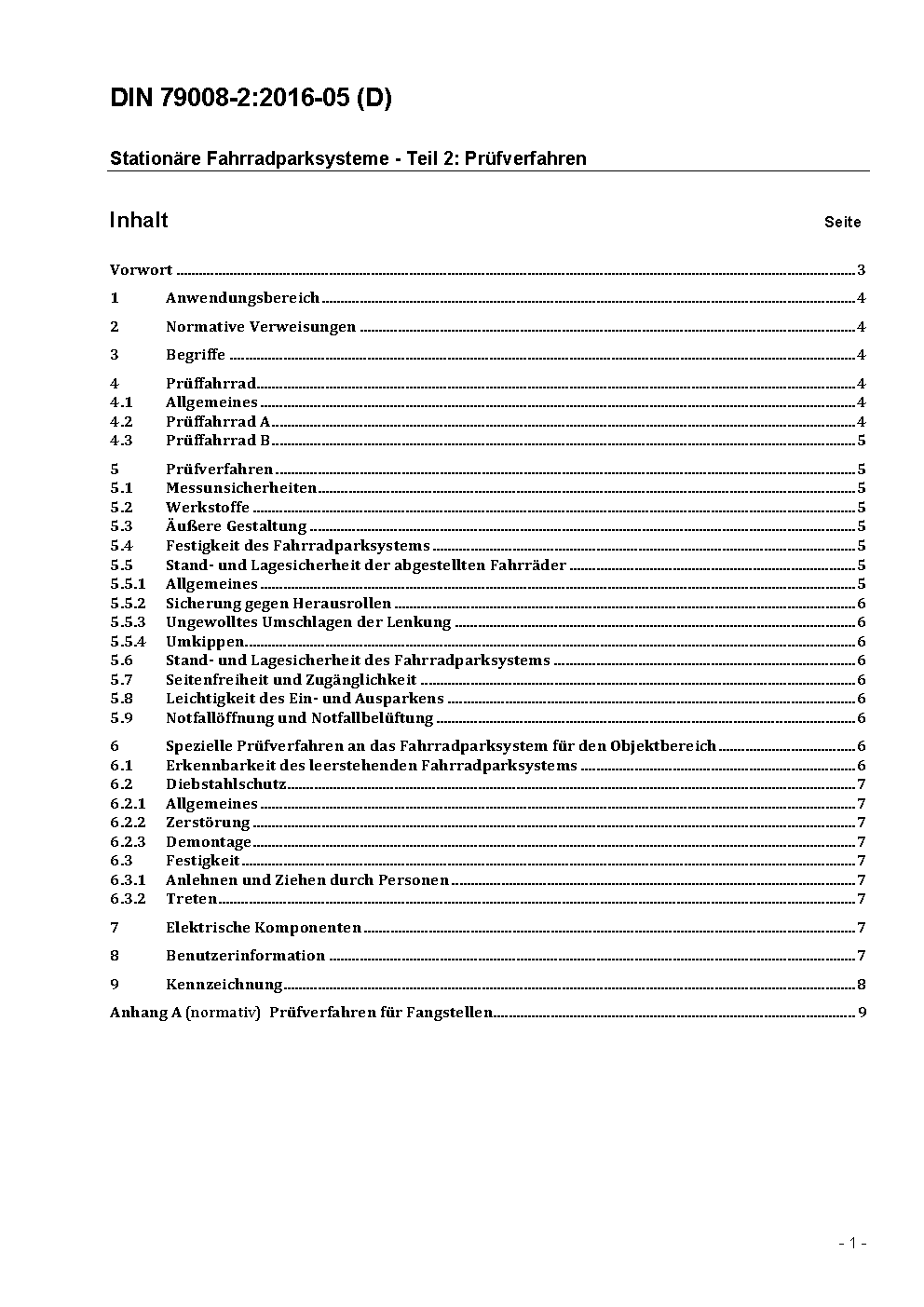Stationäre Fahrradparksysteme - Teil 2: Prüfverfahren