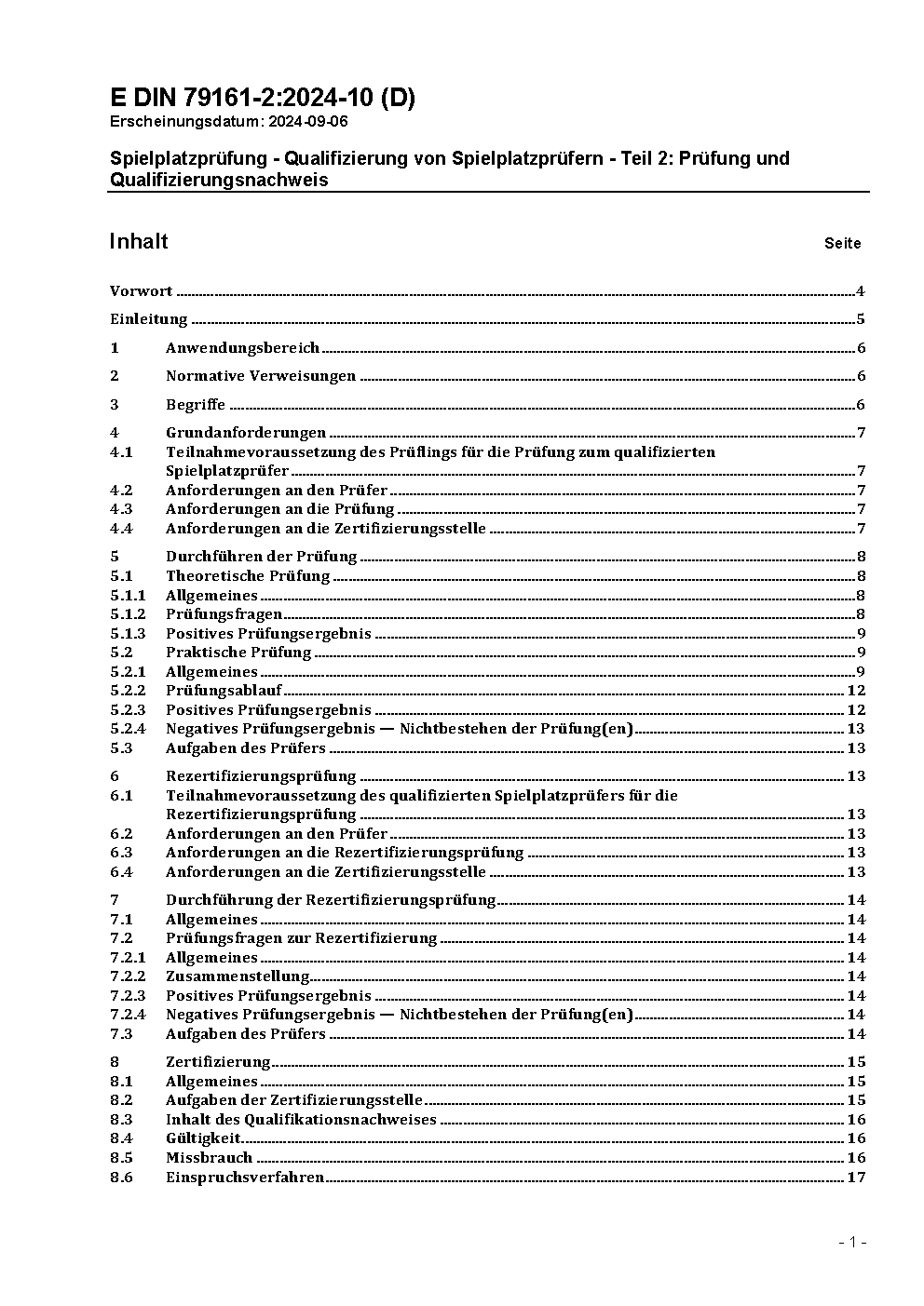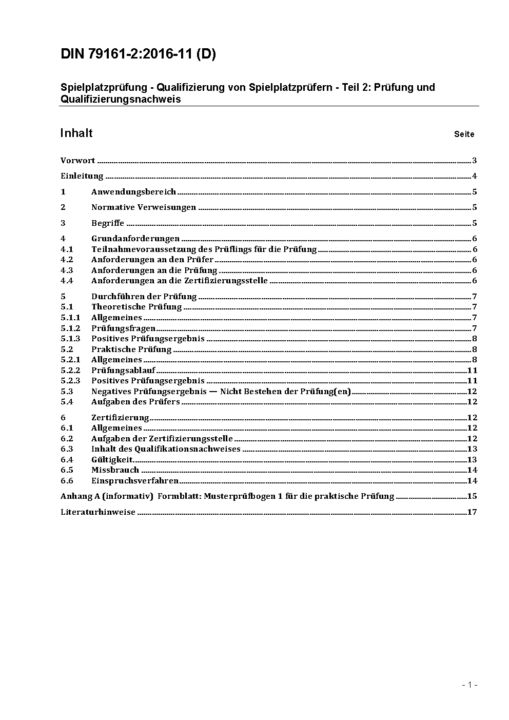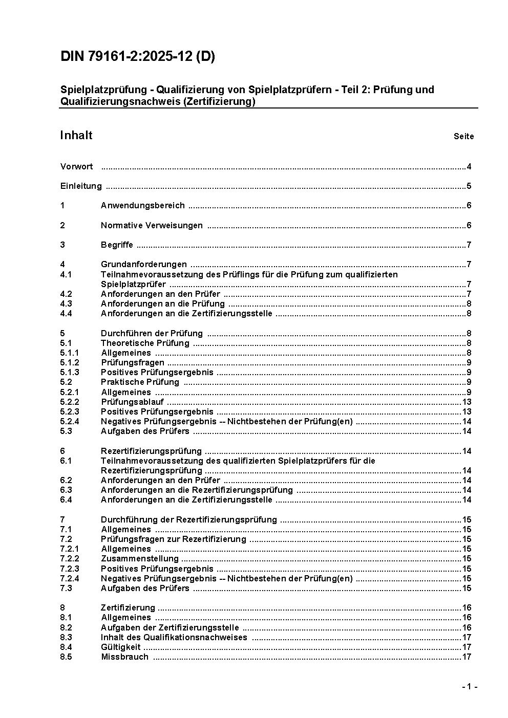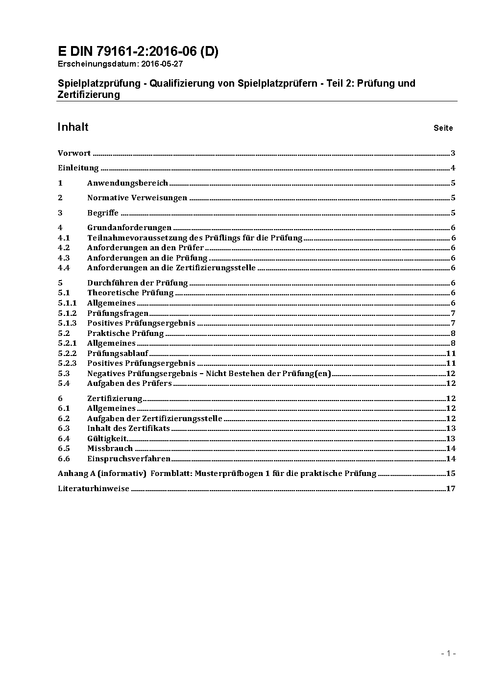 Spielplatzprüfung - Qualifizierung von Spielplatzprüfern - Teil 2: Prüfung und Qualifizierungsnachweis