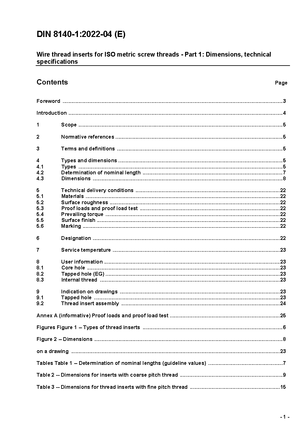 Wire thread inserts for ISO metric screw threads - Part 1: Dimensions, technical specifications