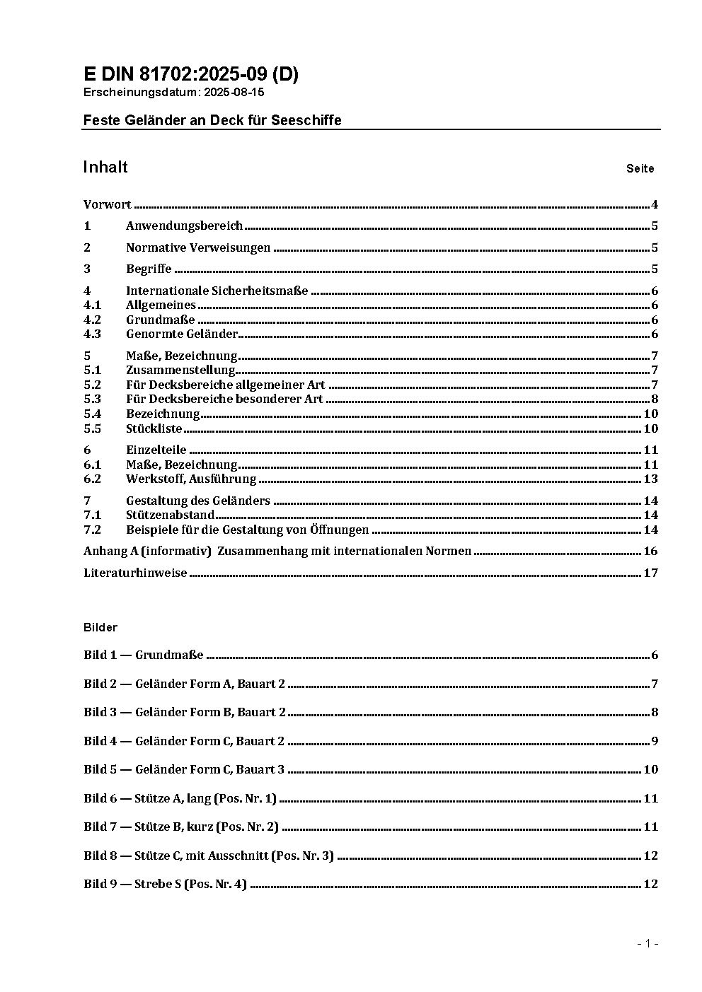 Feste Geländer an Deck für Seeschiffe / Achtung: Daneben gilt DIN 81702 (1991-09) noch bis 2013-08-31.