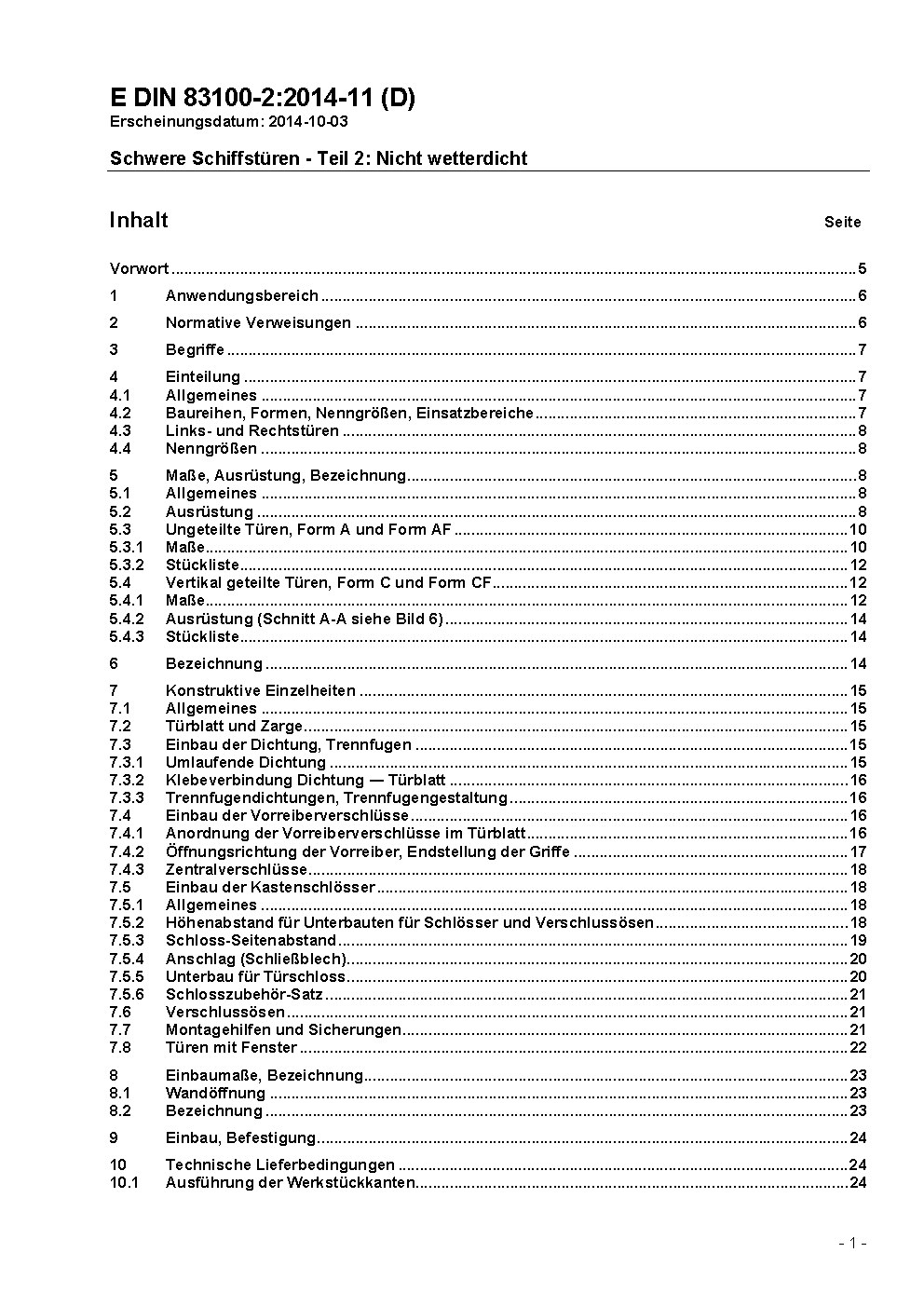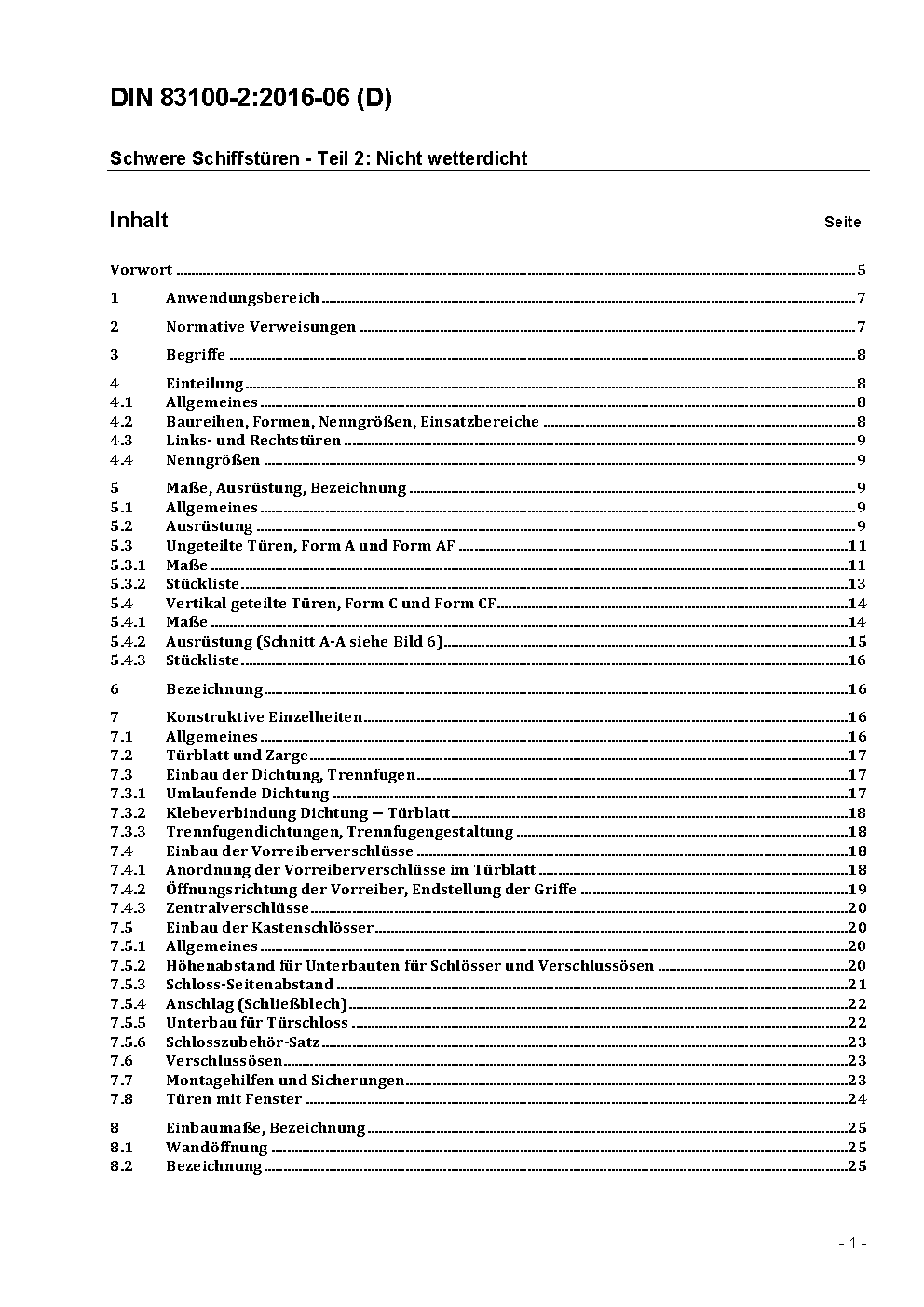 Schwere Schiffstüren - Teil 2: Wetterdicht (ISO-Typ), konstruktive Einzelheiten / Achtung: Gilt in Verbindung mit DIN 83100-1 (2002-09)