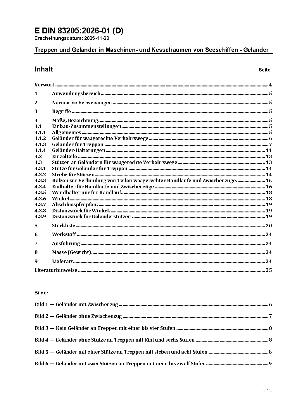 Treppen und Geländer in Maschinen- und Kesselräumen von Seeschiffen - Geländer / Achtung: Daneben gilt DIN 83205 (1984-12) noch bis 2003-01-31.