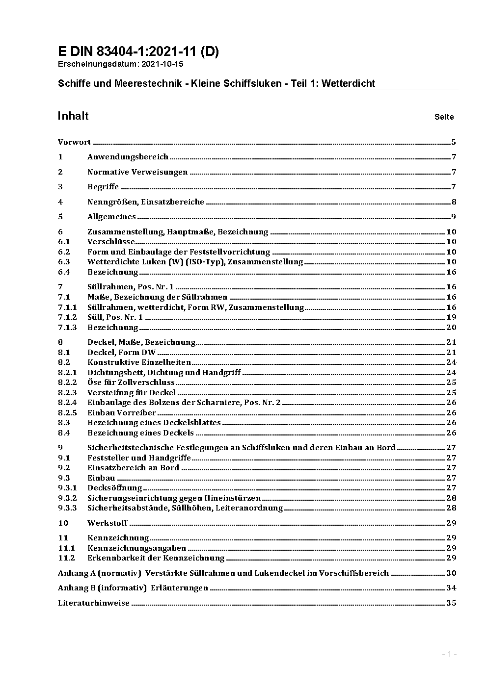 Schiffe und Meerestechnik - Kleine Schiffsluken - Teil 1: Wetterdicht