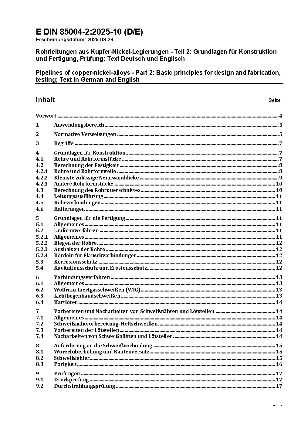 Rohrleitungen aus Kupfer-Nickel-Legierungen - Teil 2: Grundlagen für Konstruktion und Fertigung, Prüfung