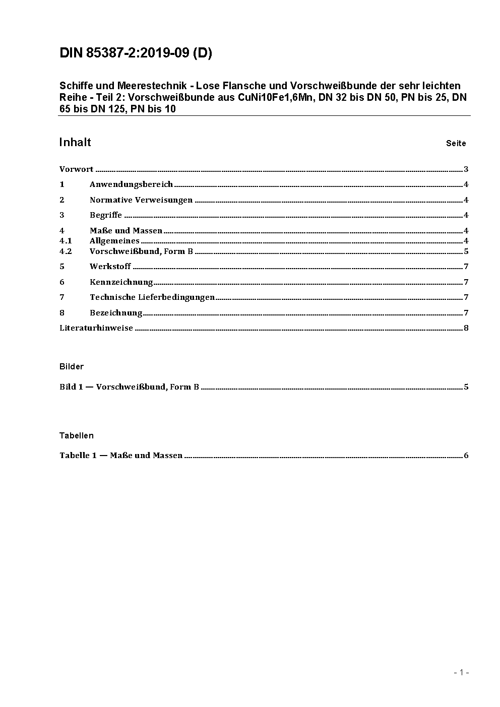 Schiffe und Meerestechnik - Lose Flansche und Vorschweißbunde - Sehr leichte Reihe - Teil 2: Vorschweißbunde aus CuNi10Fe1, 6Mn, DN 32 bis DN 50, PN bis 25, DN 65 bis DN 125, PN bis 10