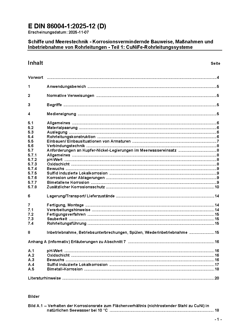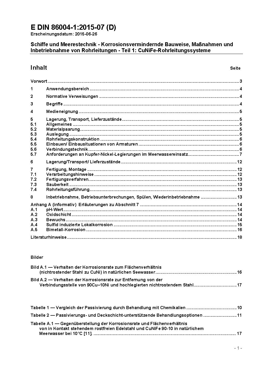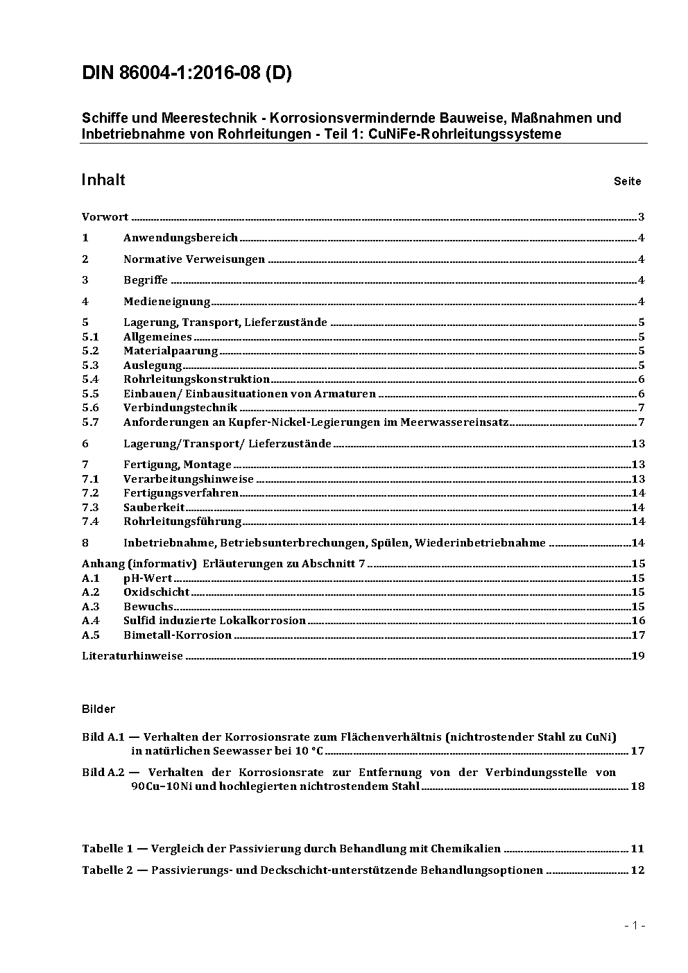 Schiffe und Meerestechnik - Korrosionsvermindernde Bauweise, Maßnahmen und Inbetriebnahme von Rohrleitungen - Teil 1: CuNiFe-Rohrleitungssysteme