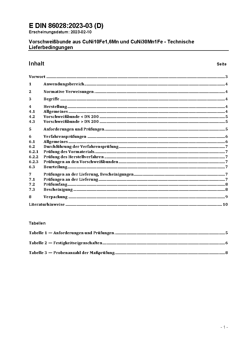 Vorschweißbunde aus CuNi10Fe1,6Mn; Technische Lieferbedingungen