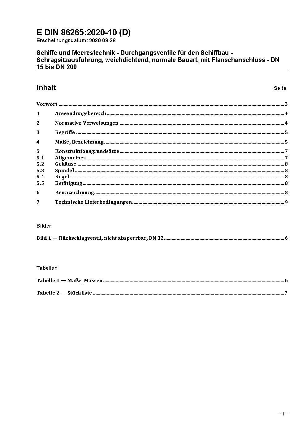 Durchgangsventile für den Schiffbau - Schrägsitzausführung, weichdichtend, normale Bauart, mit Flanschanschluss - DN 15 bis DN 200