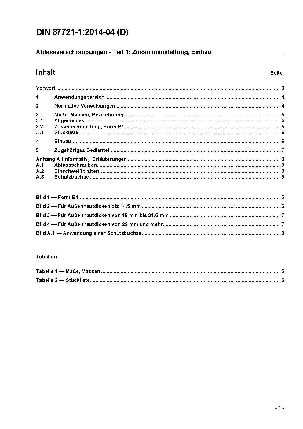 Ablaßverschraubungen - Teil 1: Zusammenstellung, Einbau