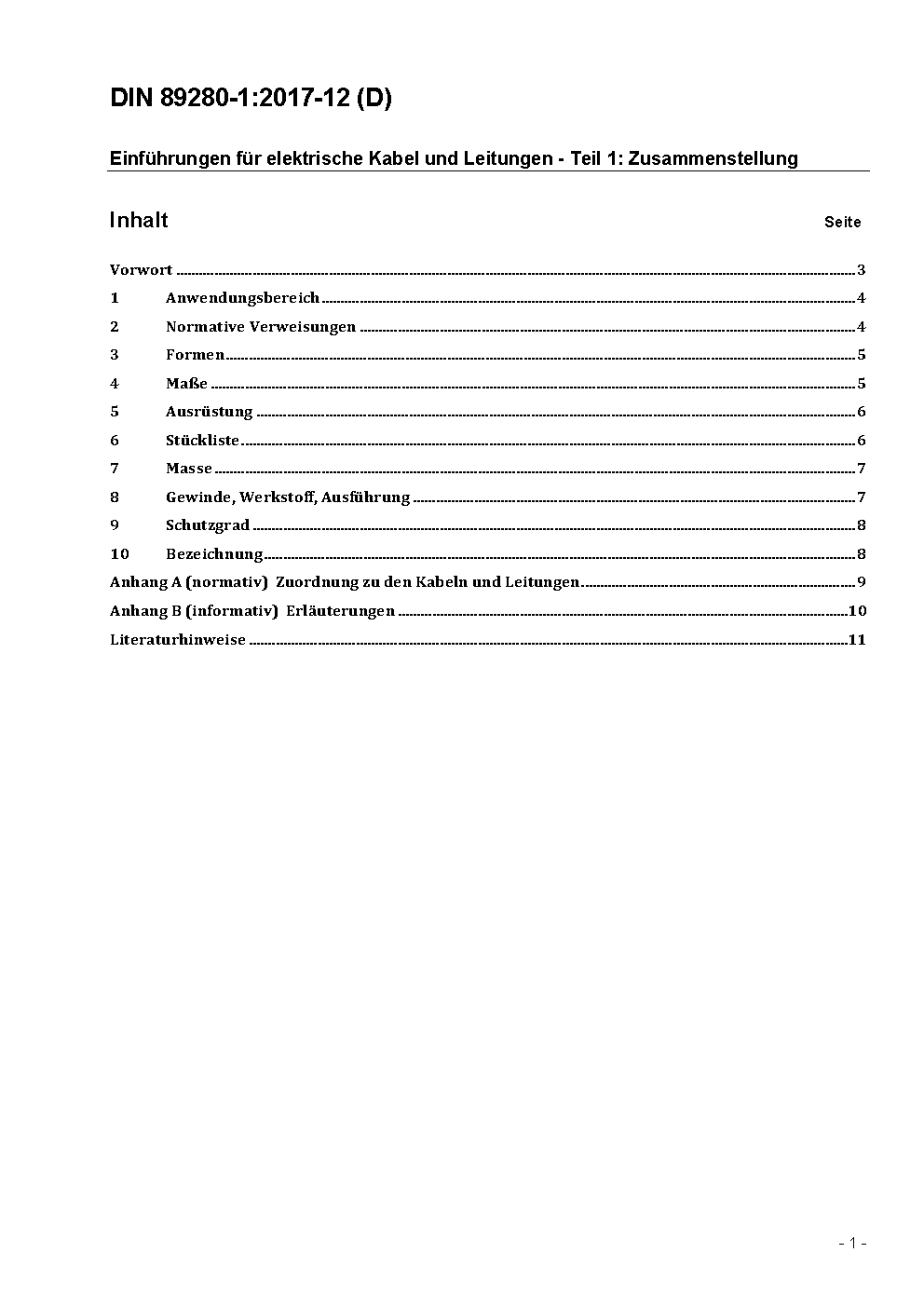 Einführungen für elektrische Kabel und Leitungen - Teil 1: Zusammenstellung