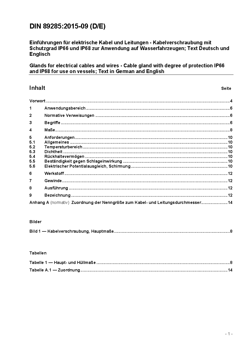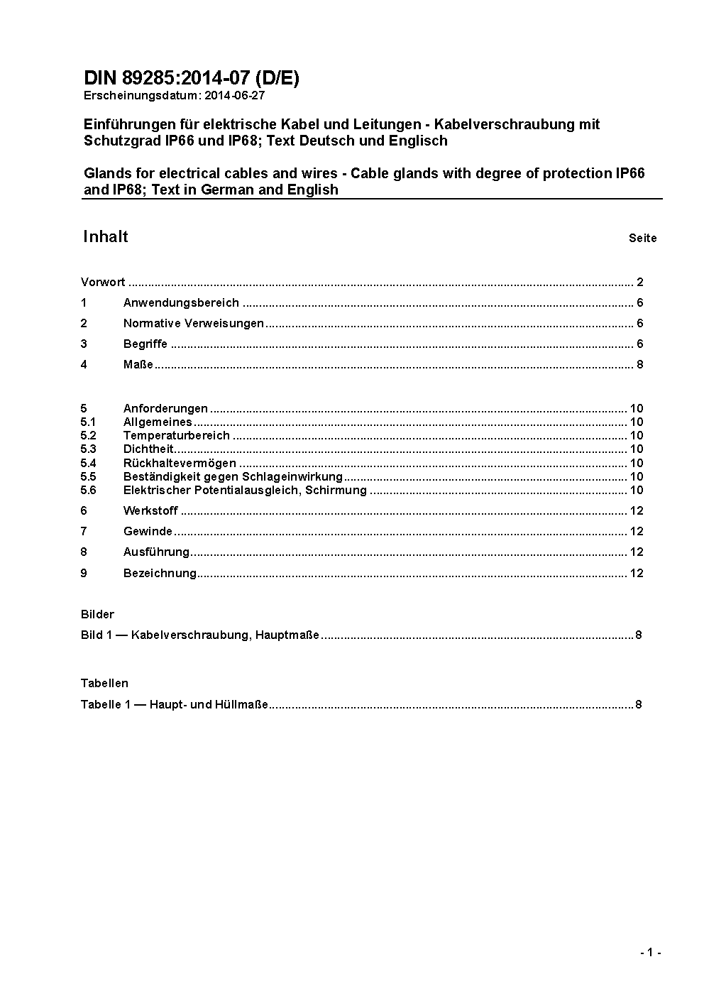 Glands for electrical cables and wires - Cable glands with degree of protection IP 66 and IP 68; Text in German and English