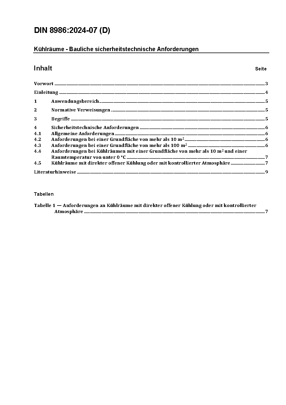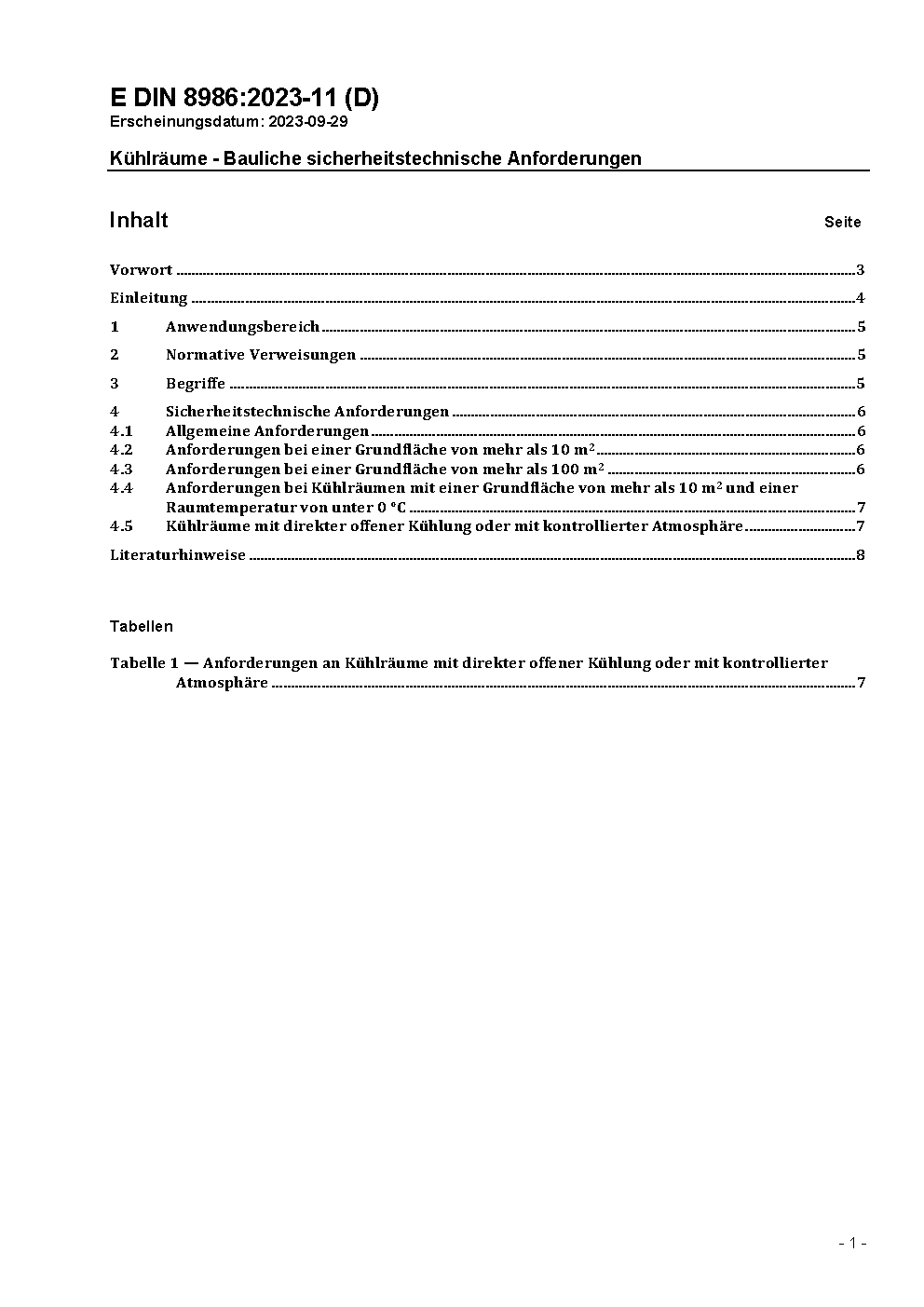 Kühlräume - Bauliche sicherheitstechnische Anforderungen