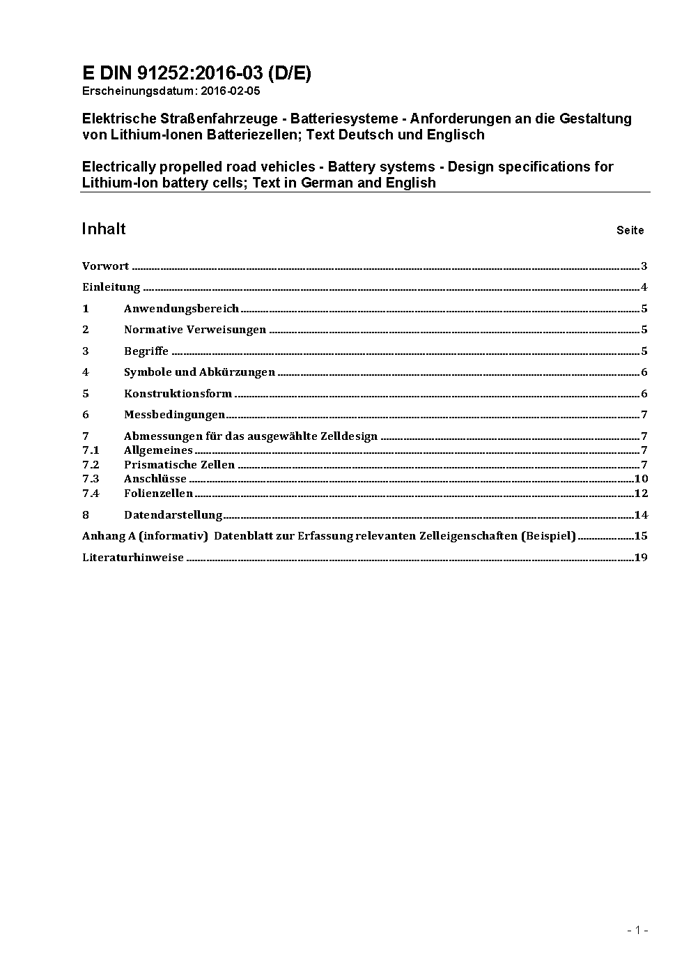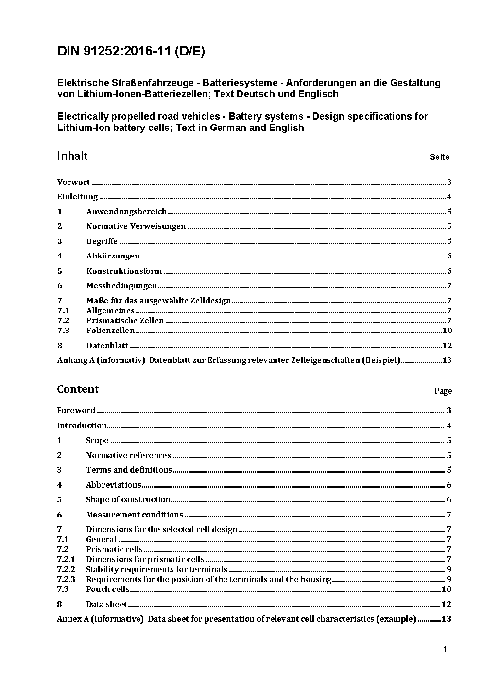 Elektrische Straßenfahrzeuge - Batteriesysteme - Anforderungen an die Gestaltung von Lithium-Ionen Batteriezellen; Text Deutsch und Englisch