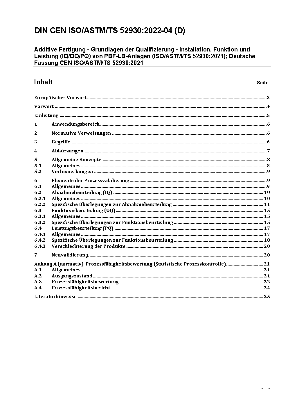 Additive Fertigung - Grundlagen der Qualifizierung - Installation, Funktion und Leistung (IQ/OQ/PQ) von PBF-LB-Anlagen (ISO/ASTM/TS 52930:2021); Deutsche Fassung CEN ISO/ASTM/TS 52930:2021