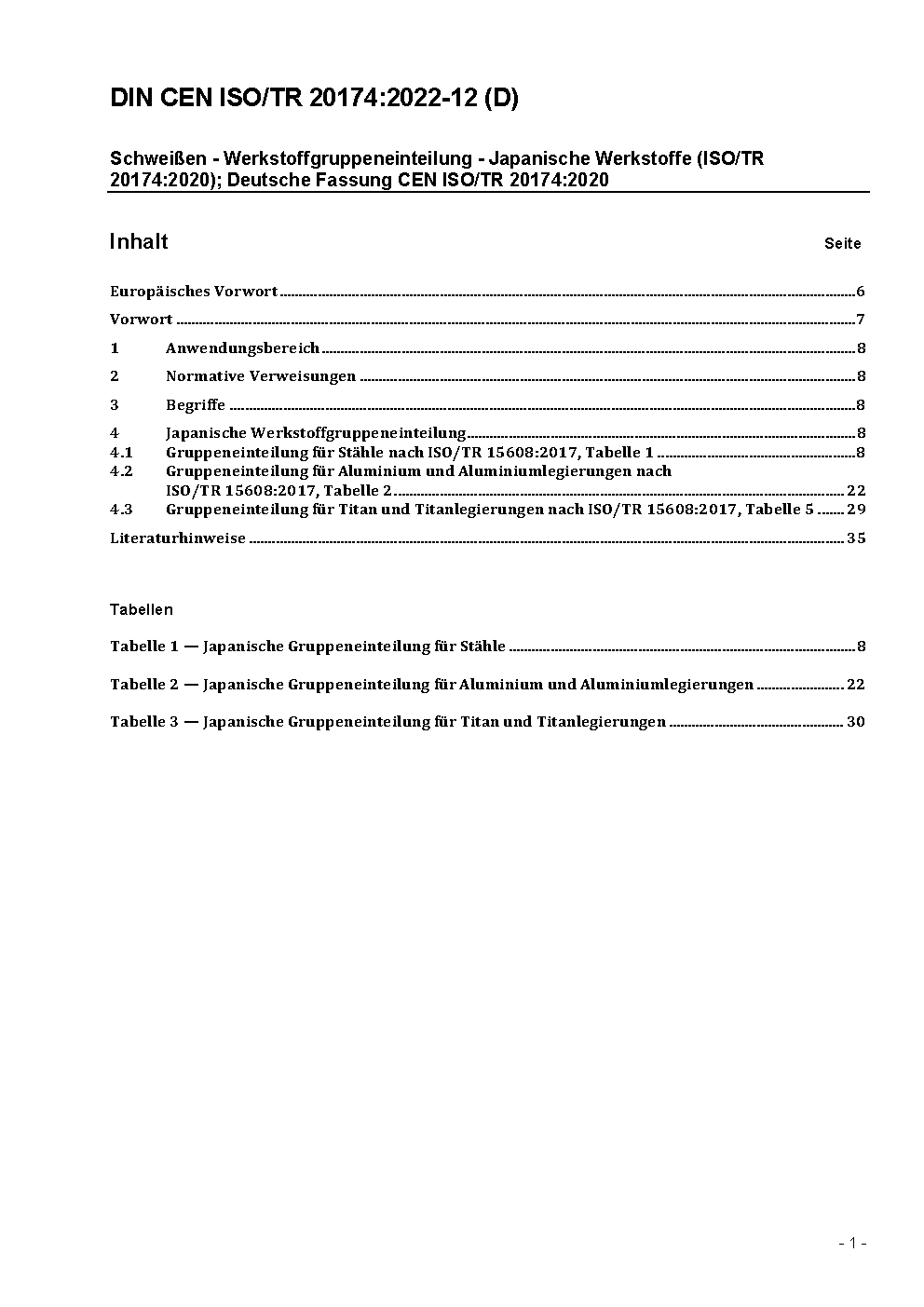 Schweißen - Werkstoffgruppeneinteilung - Japanische Werkstoffe (ISO/TR 20174:2020); Deutsche Fassung CEN ISO/TR 20174:2020