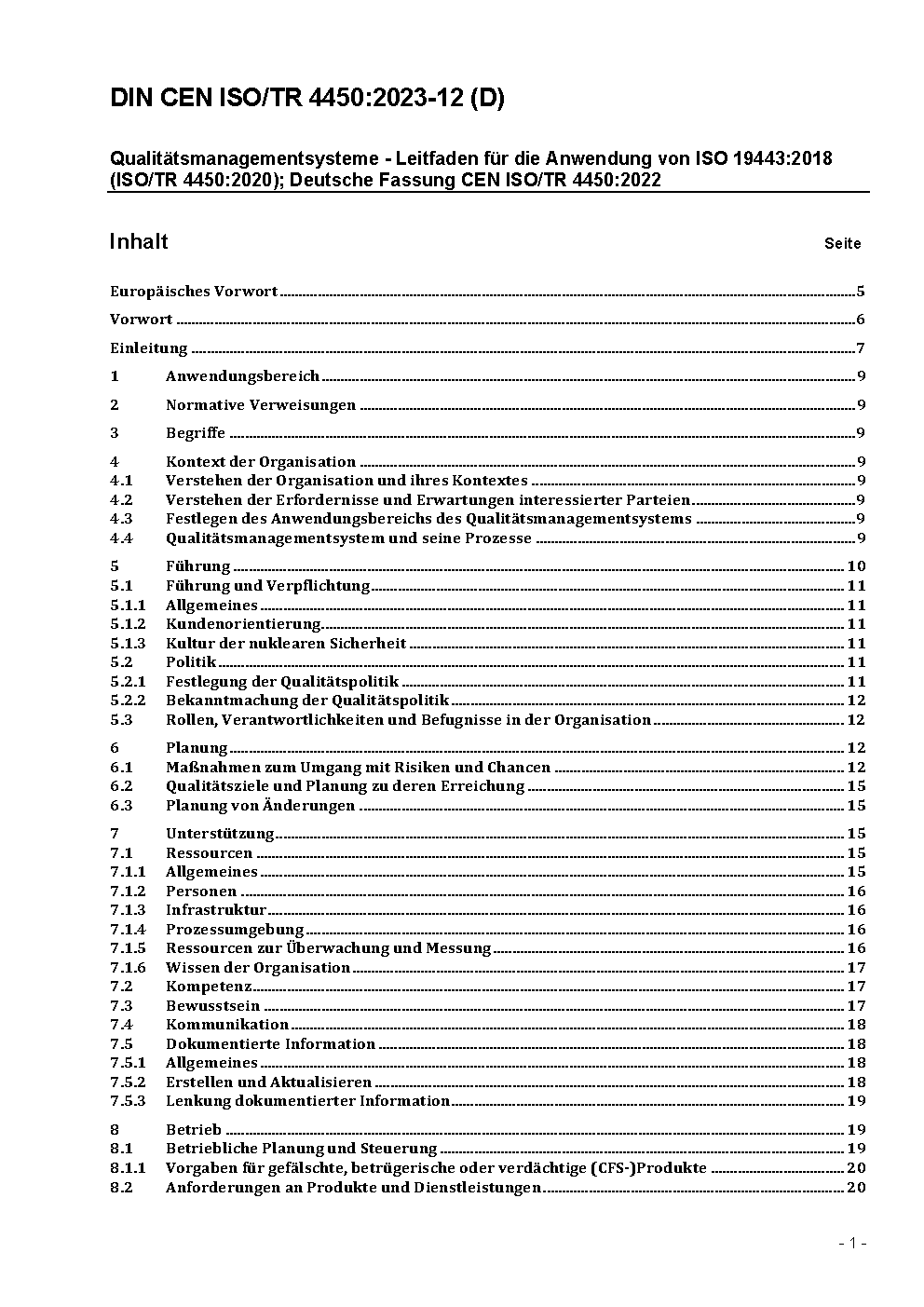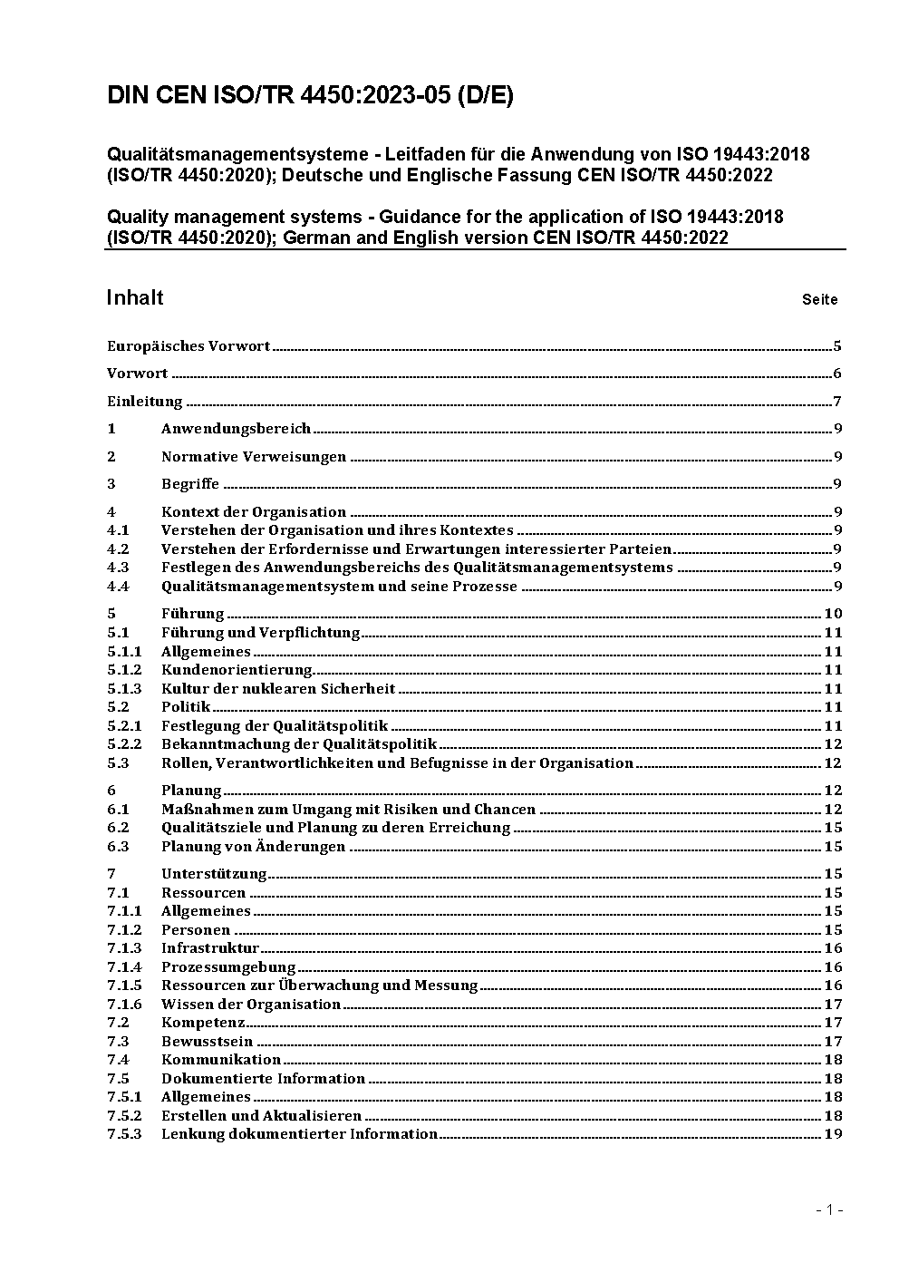 Quality management systems - Guidance for the application of ISO 19443:2018 (ISO/TR 4450:2020); German and English version CEN ISO/TR 4450:2022